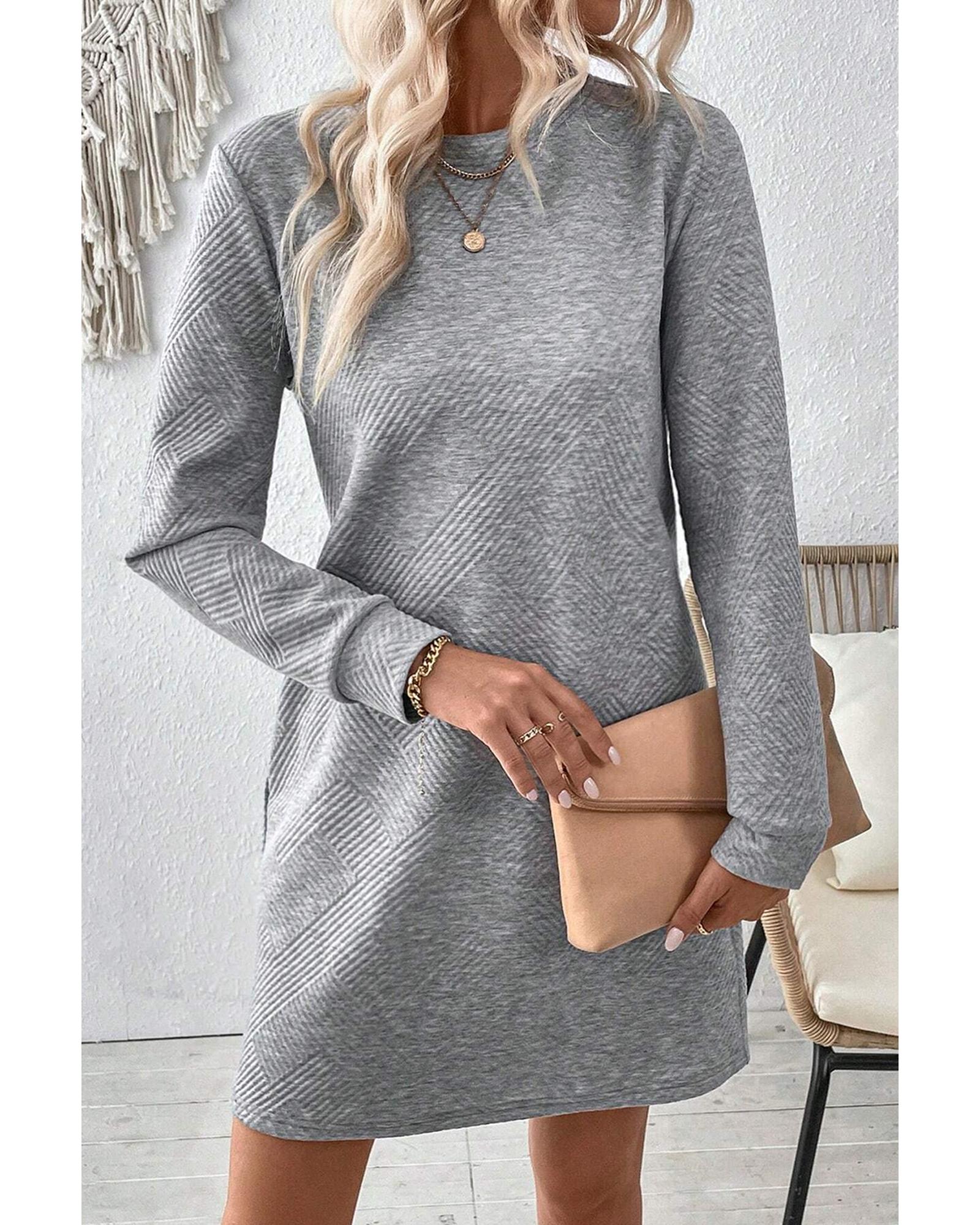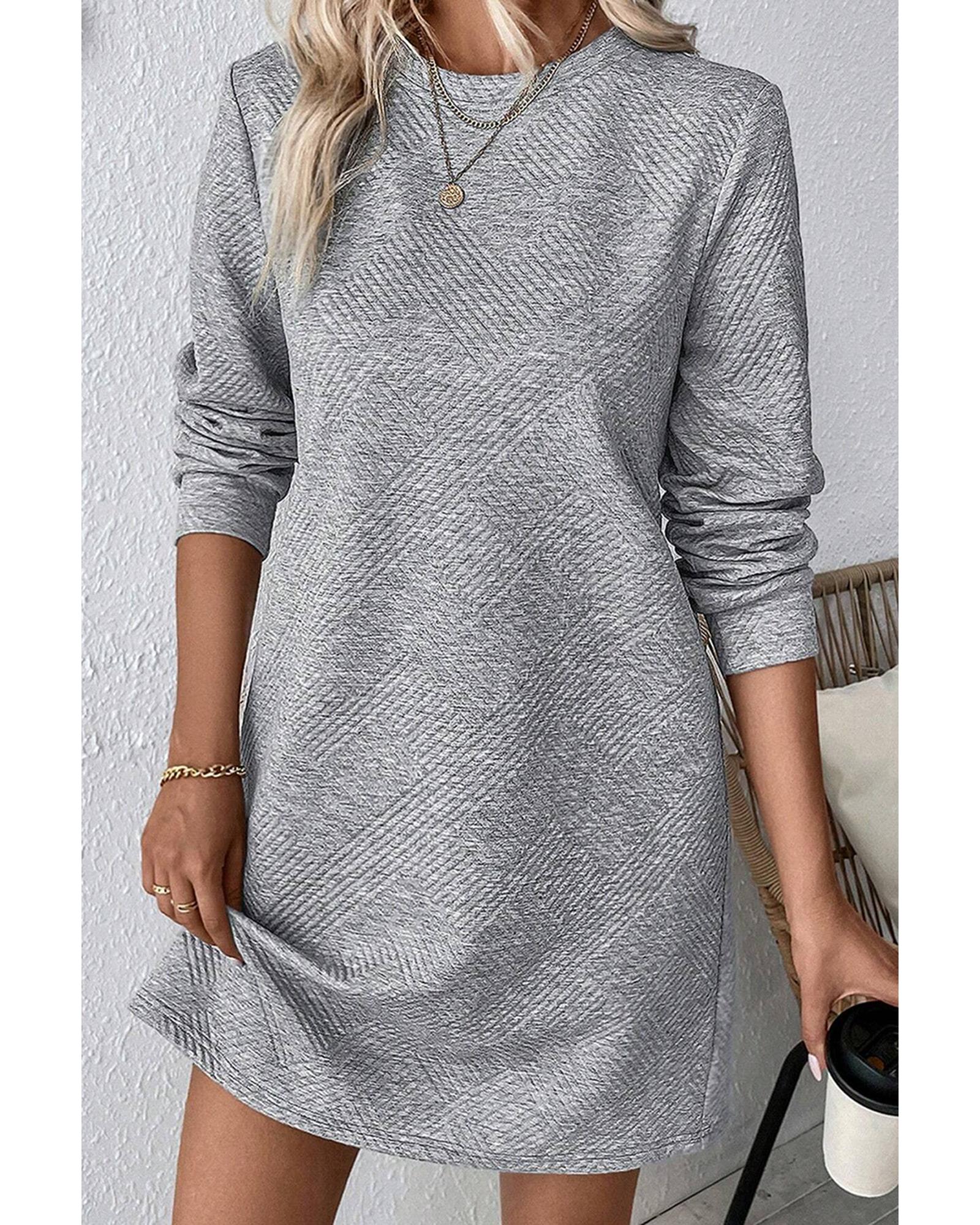 - Gray Solid Color Textured Long Sleeve Shift Dress