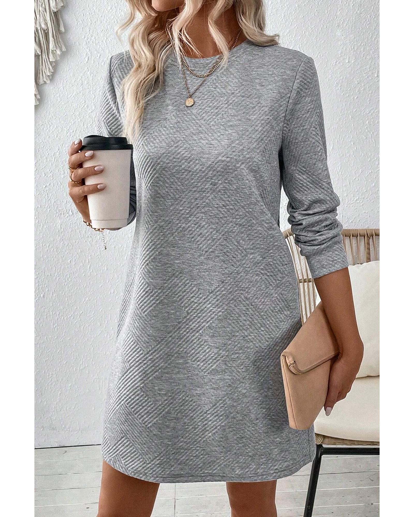 • Gray Solid Color Textured Long Sleeve Shift Dress