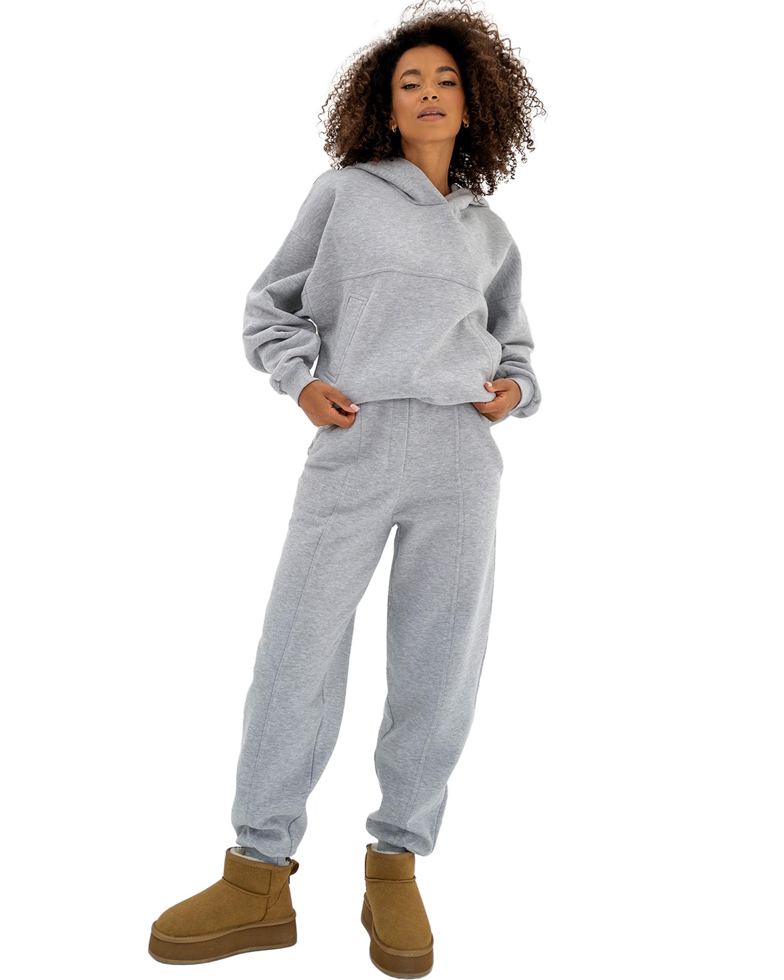 - Gray Solid Exposed Seams Hoodie and Joggers Activewear Set