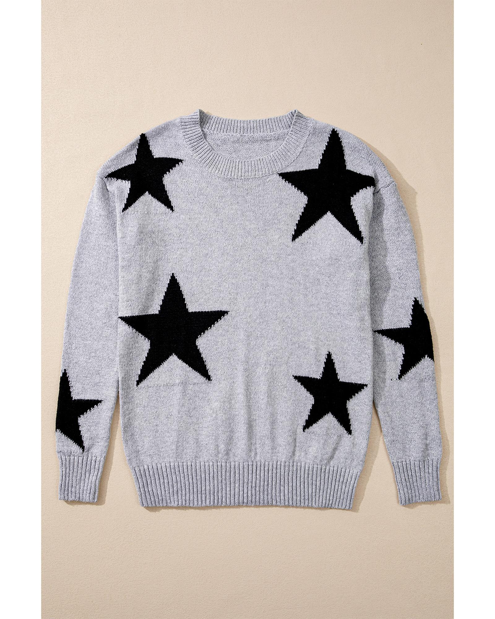 Gray Star Pattern Drop Shoulder Sweater – S