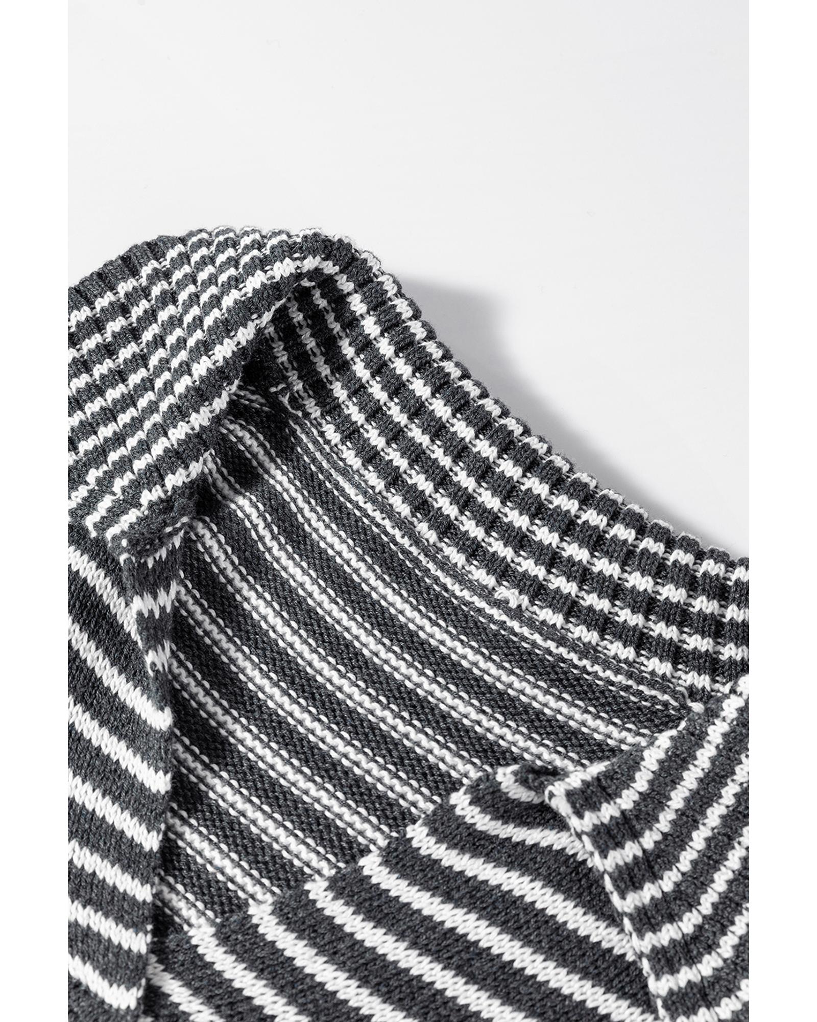 Gray Stripe Collared V Neck Sweater Vest with Pockets – M