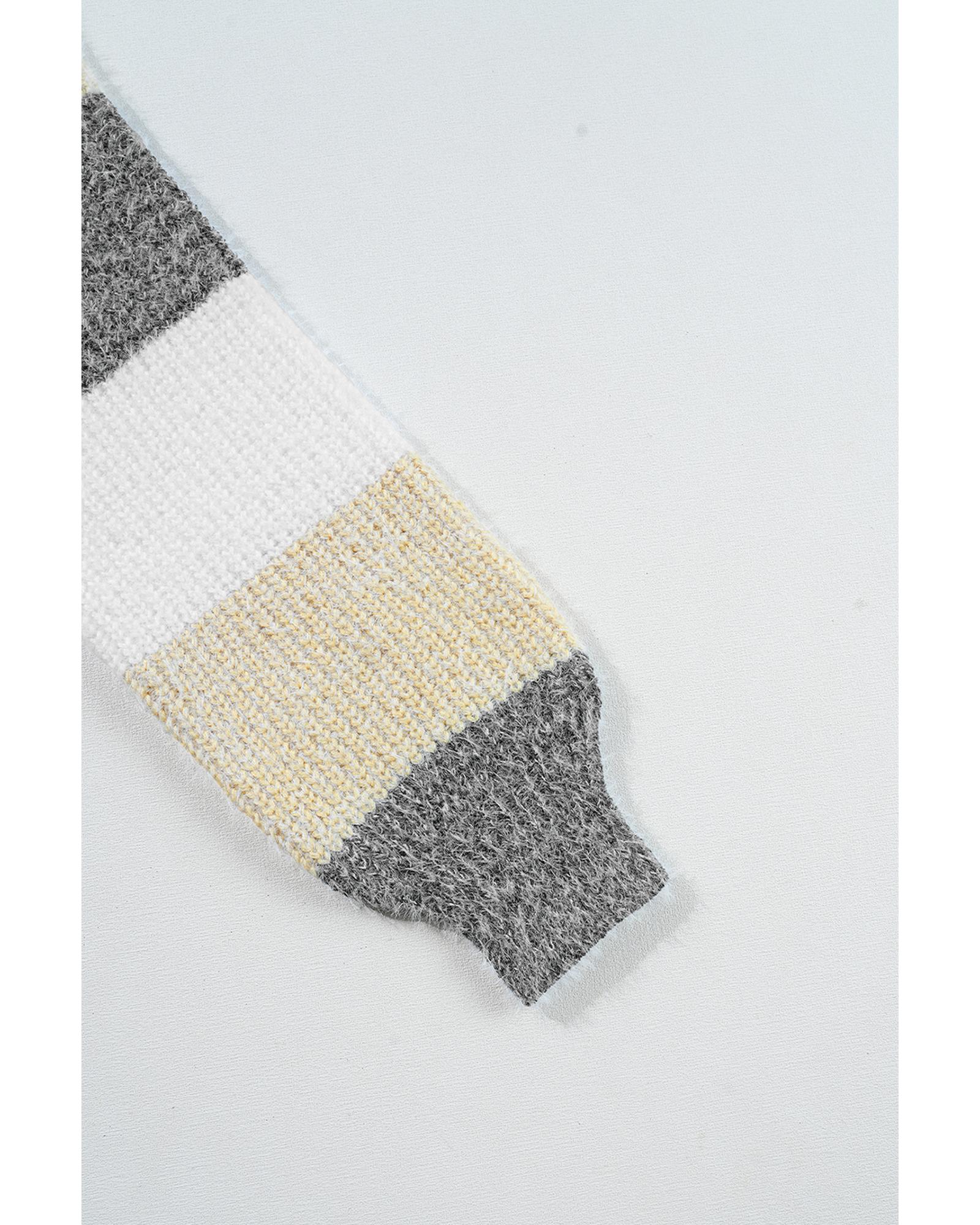 Gray Stripe Colorblock Bubble Sleeve Drop Shoulder Sweater Dress - XL