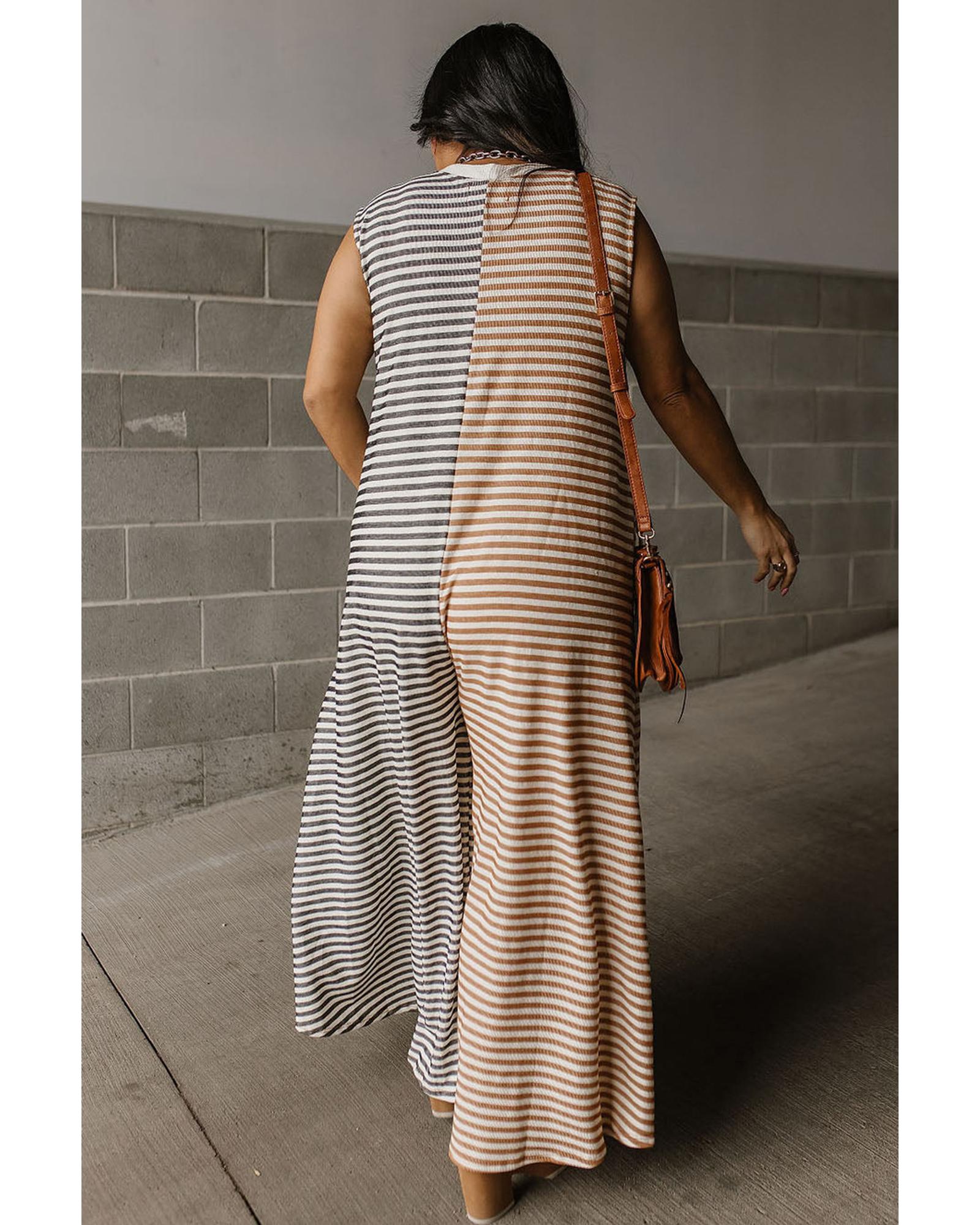Gray Stripe Plus Size Color Block Buttoned Sleeveless Wide Leg Jumpsuit – 2X