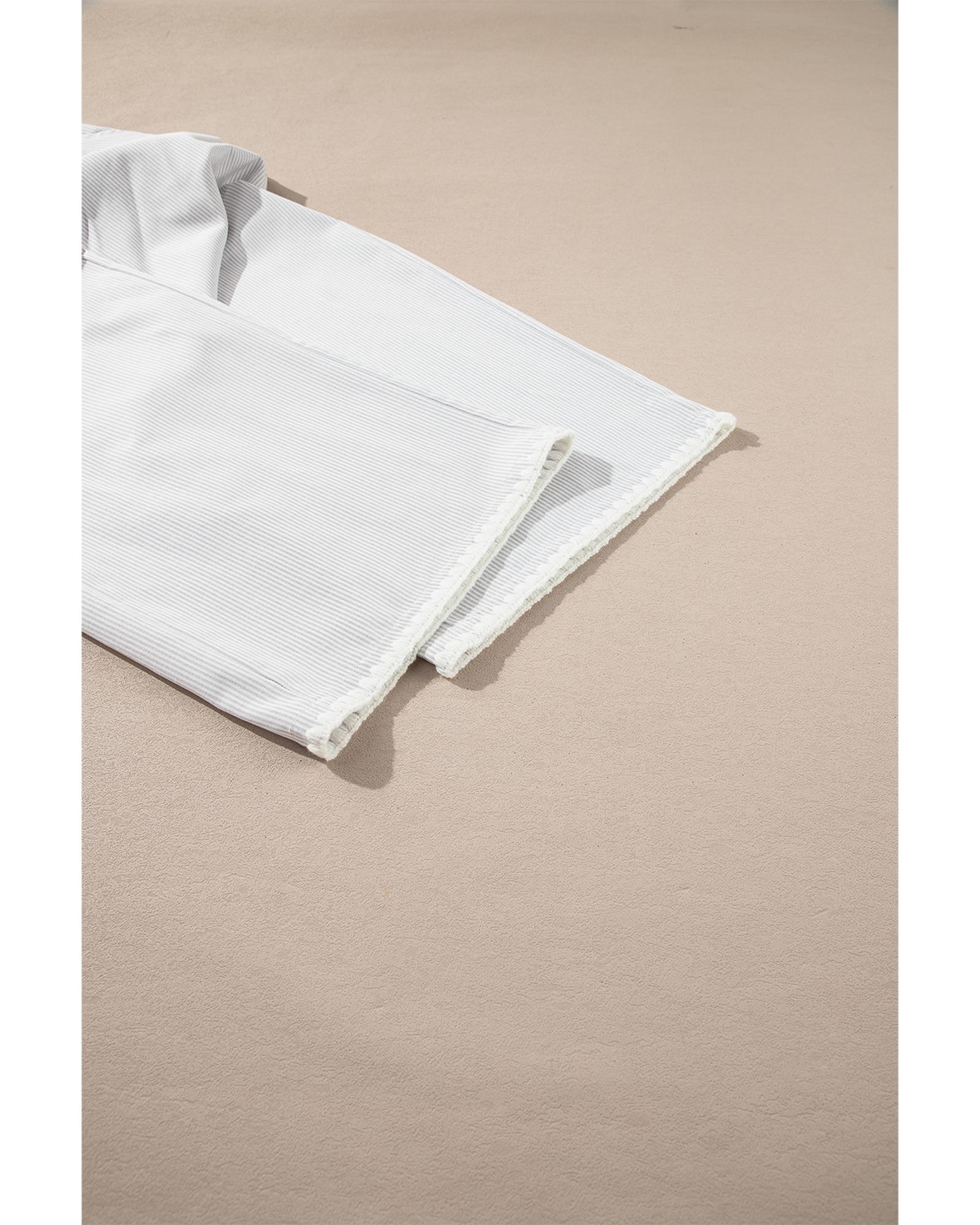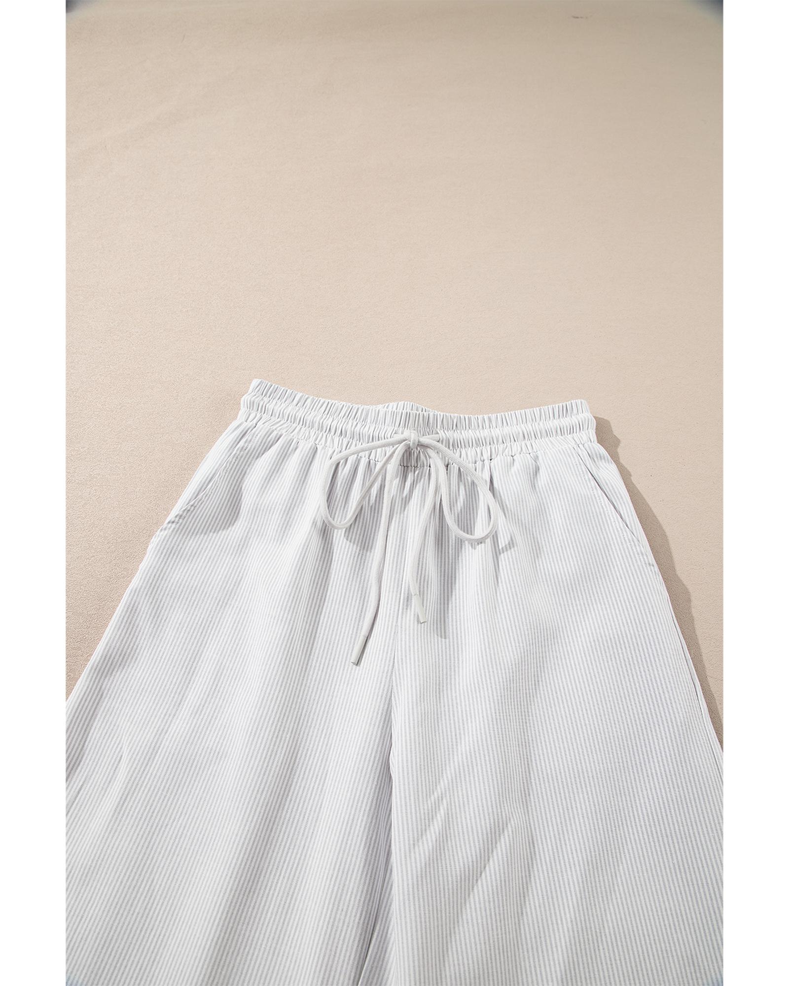 Gray Stripe Zipped up Collar Ruffled Sleeve Tee and Wide Leg Pants 2pcs Outfit – M