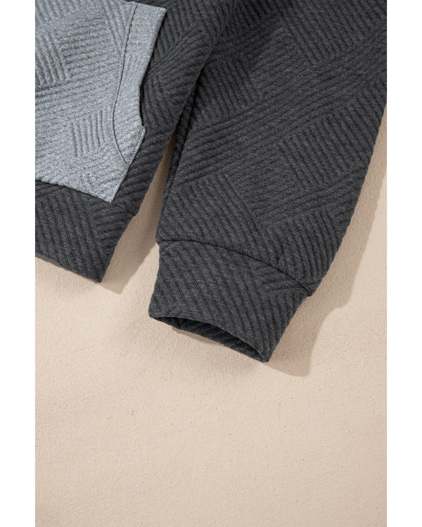 Gray Textured Color Block Kangaroo Pocket Drop Shoulder Hoodie – M