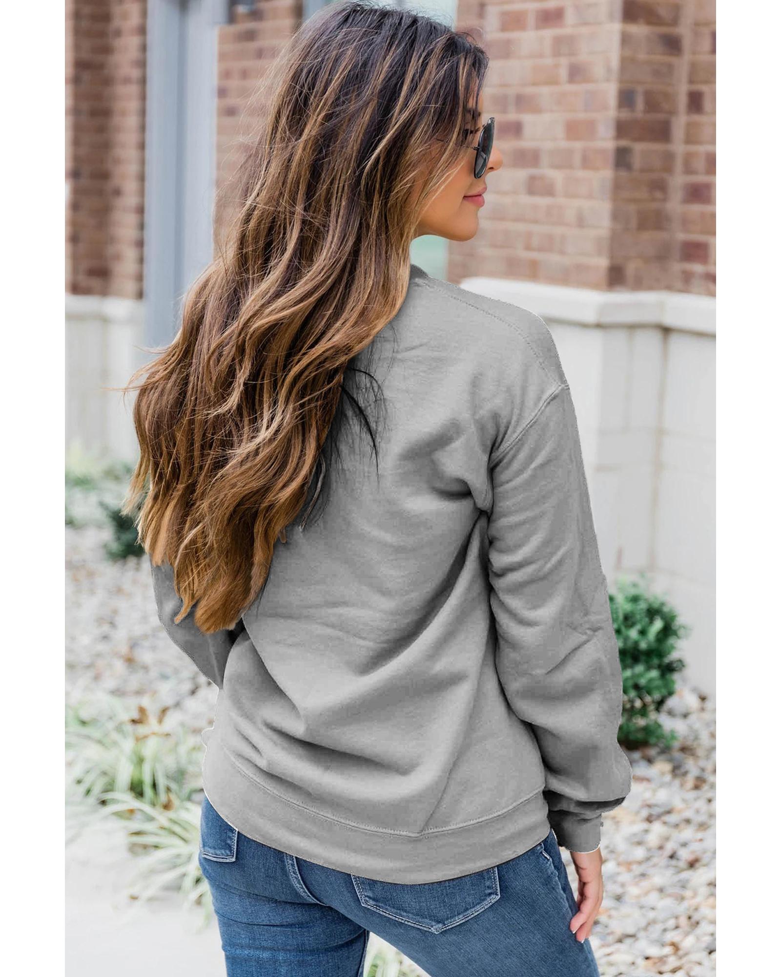 Gray Thanksgiving Slogan Pumpkin Turkey Pie Graphic Sweatshirt – S