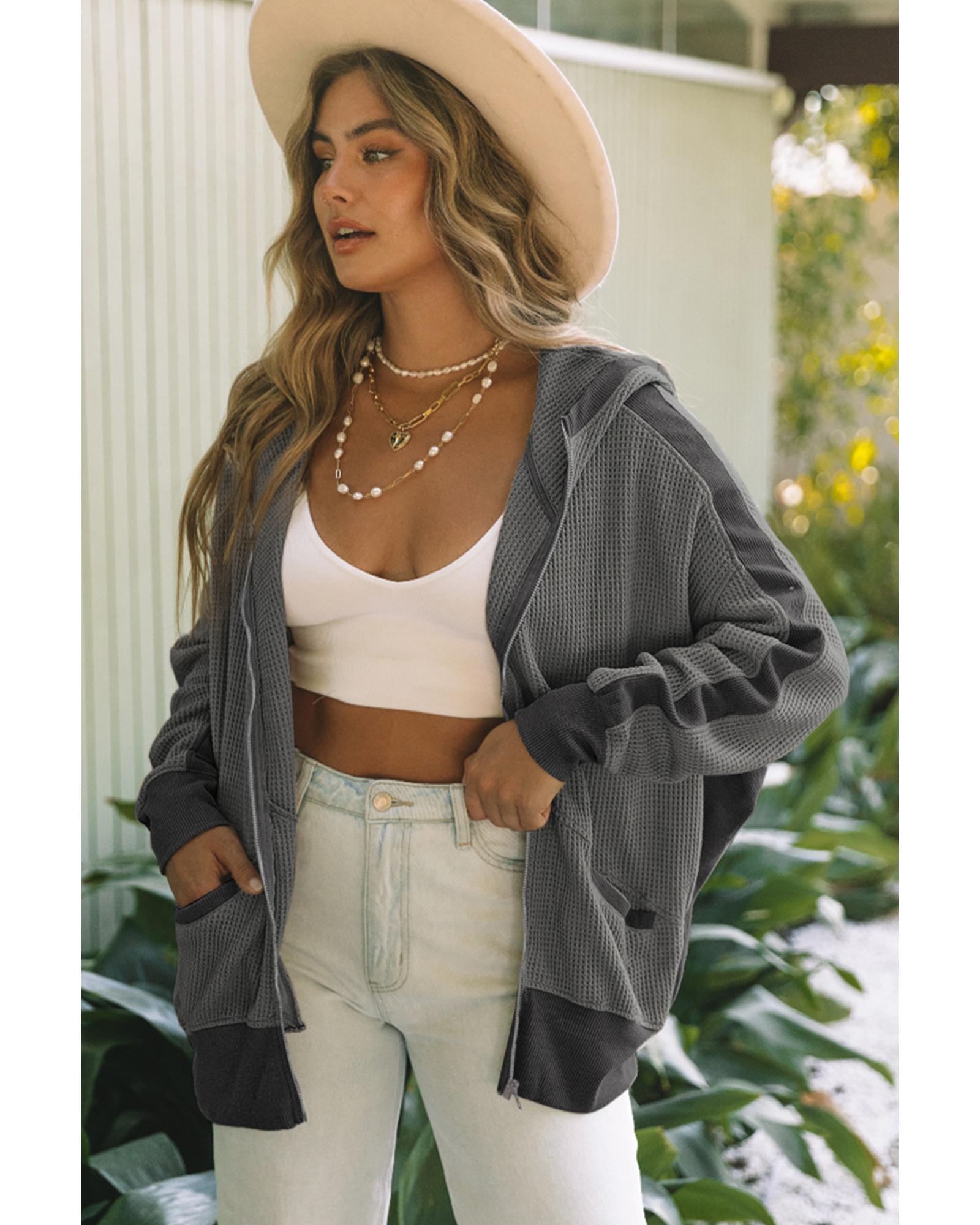 Gray Thermal Waffle Knit Full Zipper Hooded Jacket – 2XL