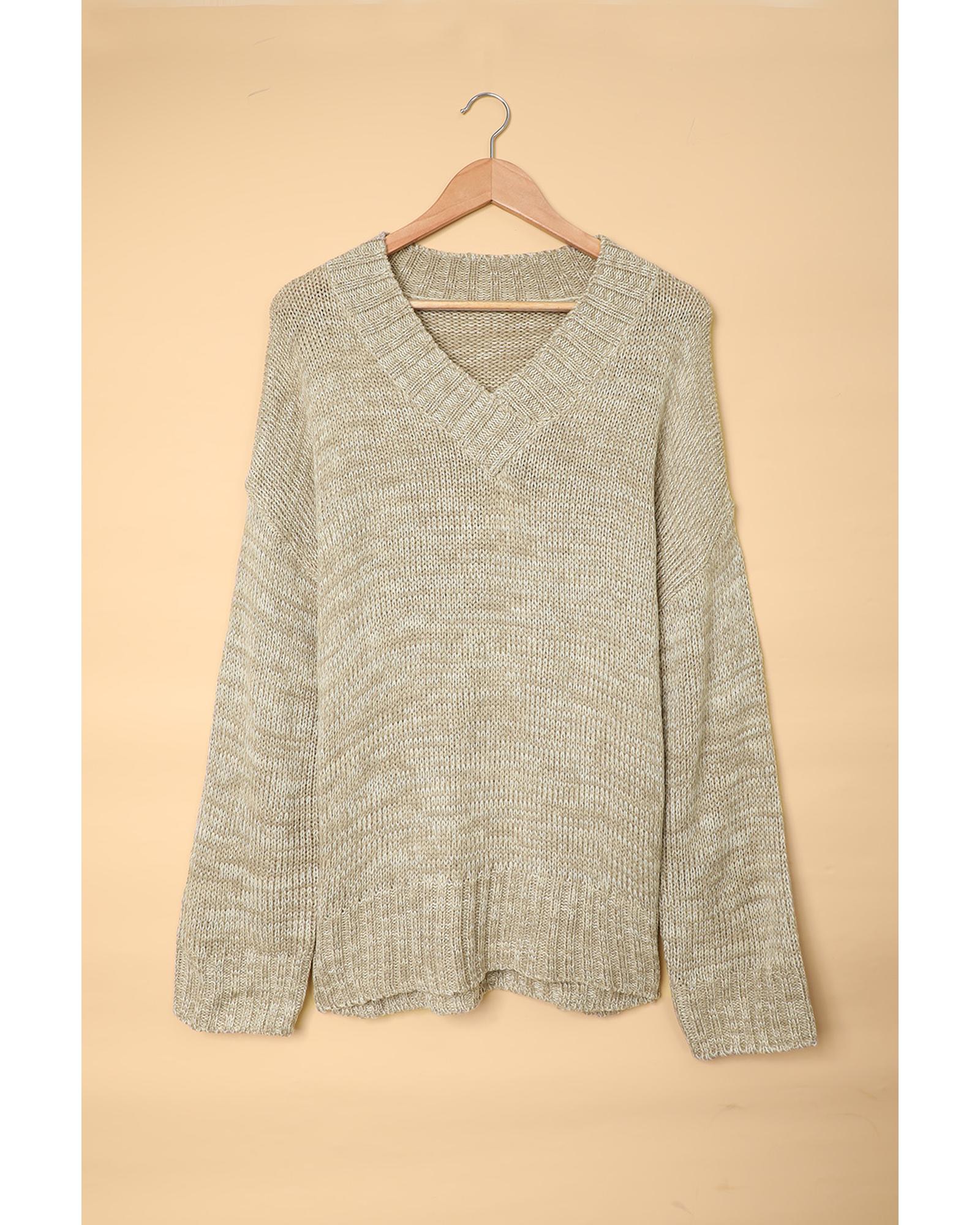 Gray V neck Drop Shoulder Knitted Sweater – L
