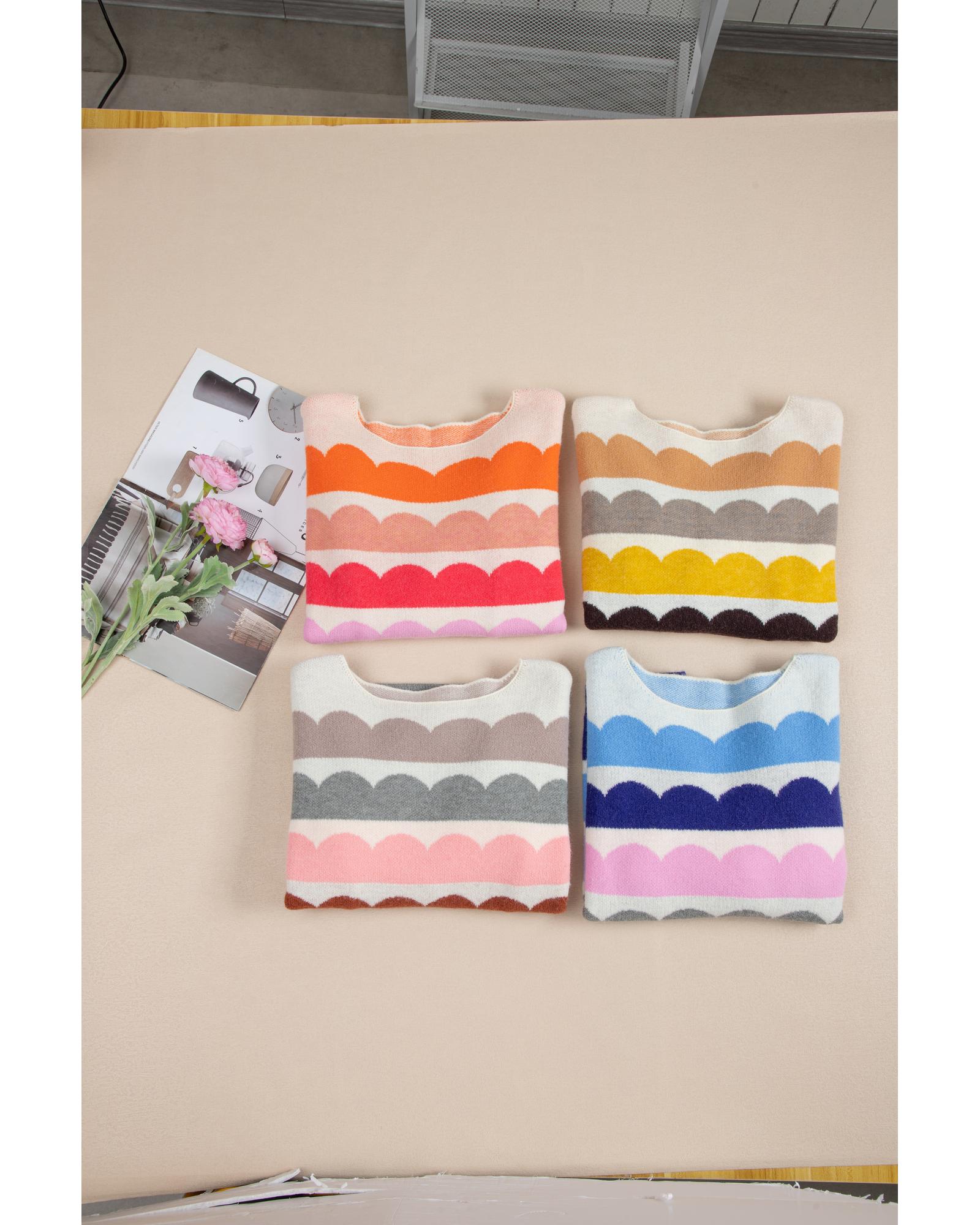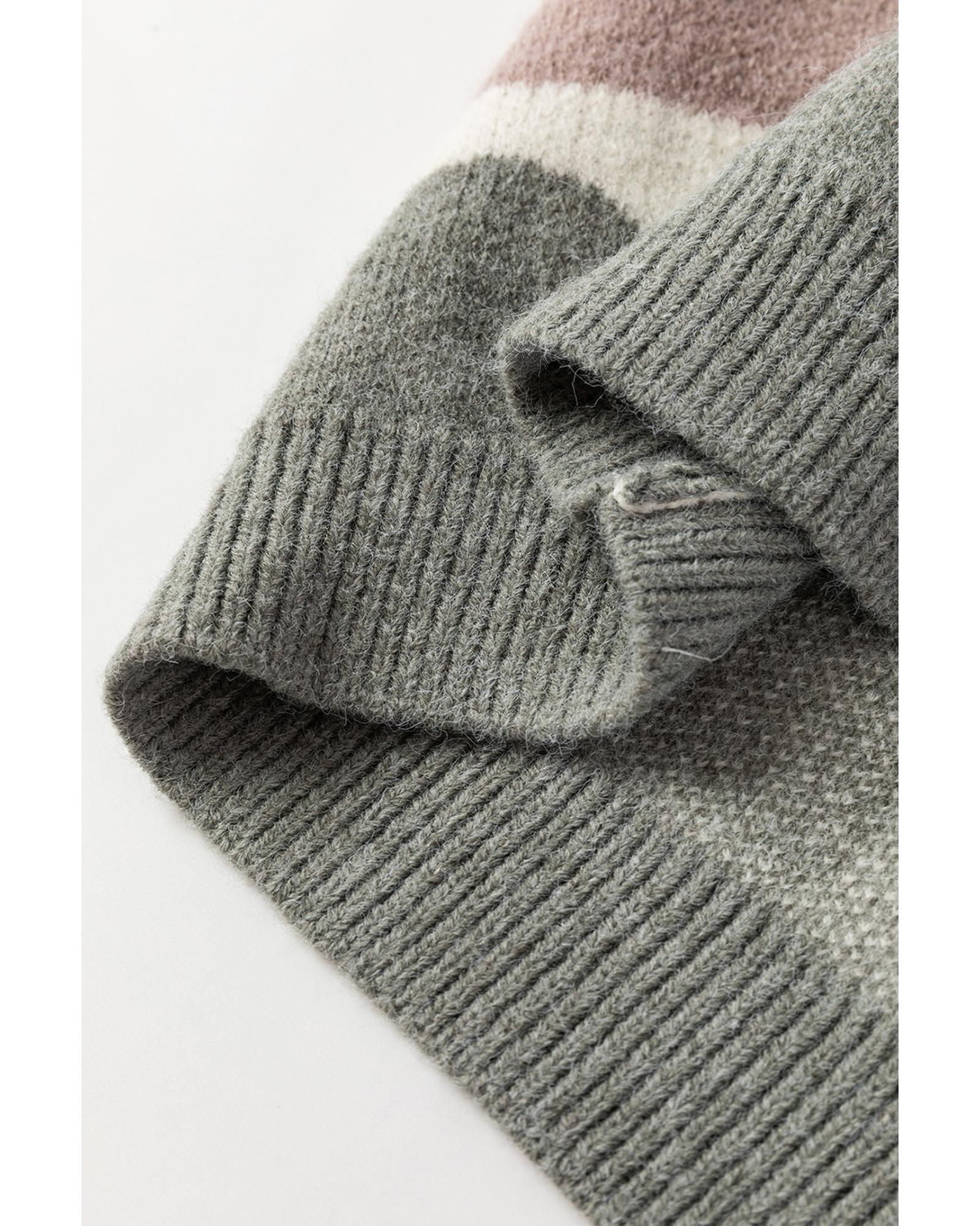 Gray Wave Striped Balloon Sleeve Drop Shoulder Sweater – M