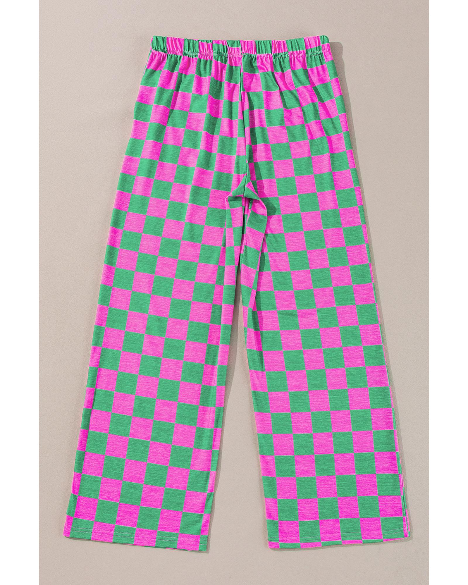 Green 2-Tone Checked Print High Waist Wide Leg Pants – L