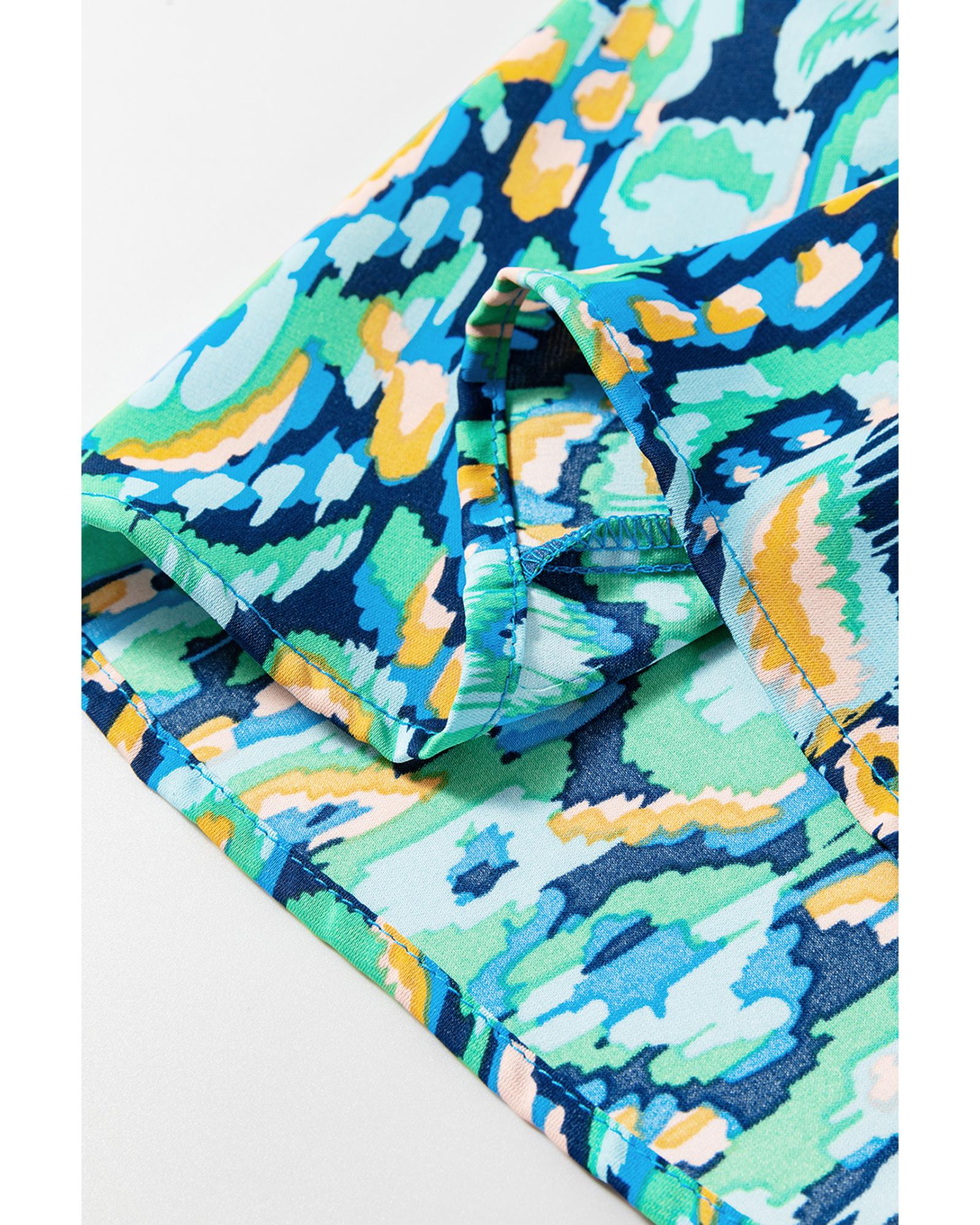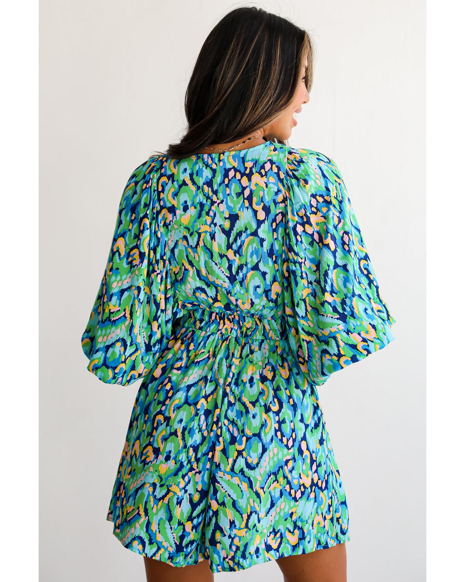 Green Abstract Print Puff Sleeve V Neck High Waist Romper – M