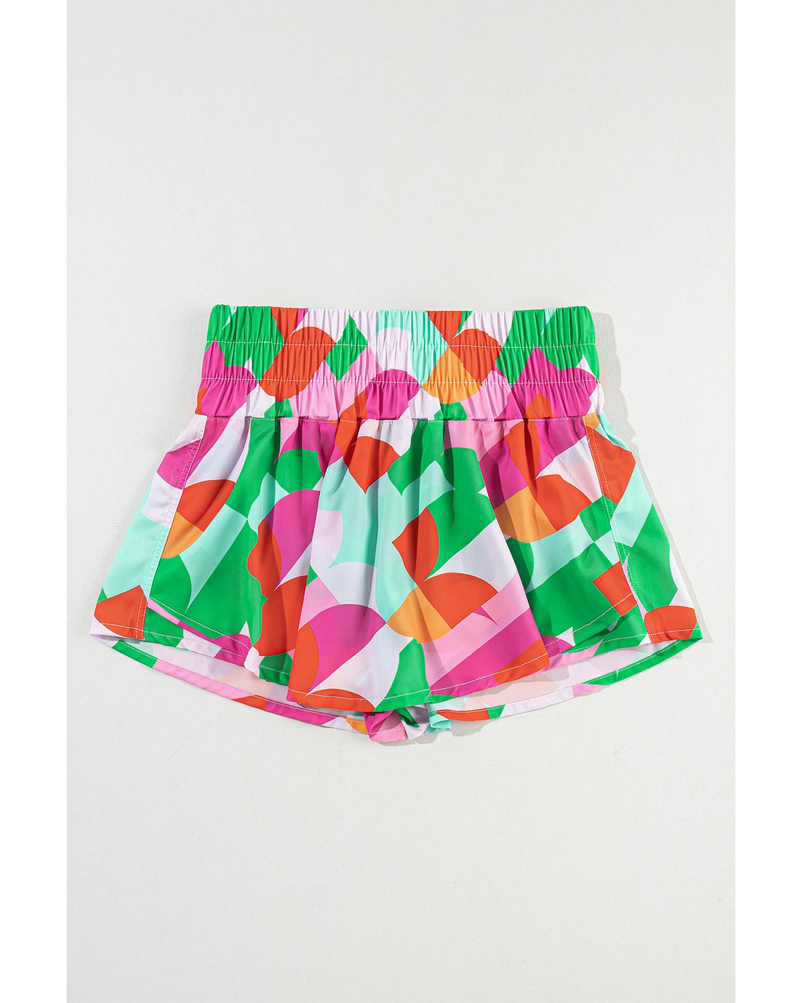 Green Abstract Print Smock Waist Casual Shorts – XL