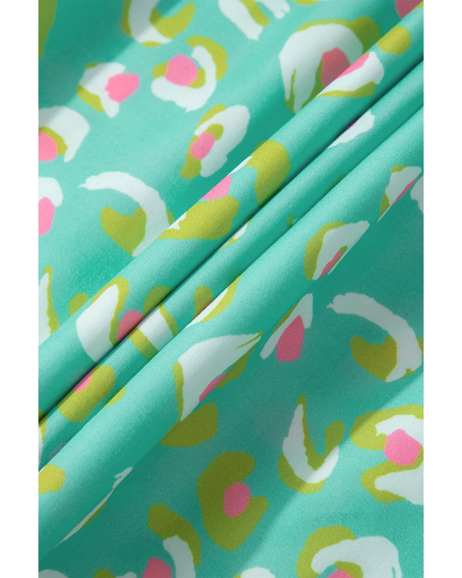Green Abstract Printed Lace-up Lantern Sleeve Babydoll Blouse – M