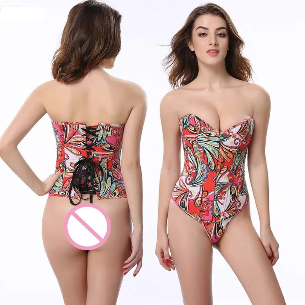 • 1 x Green Bustier Corset Top With Thong Front 6 Busk Back Lace Plus Size Alluring Lingerie For Busty Women
