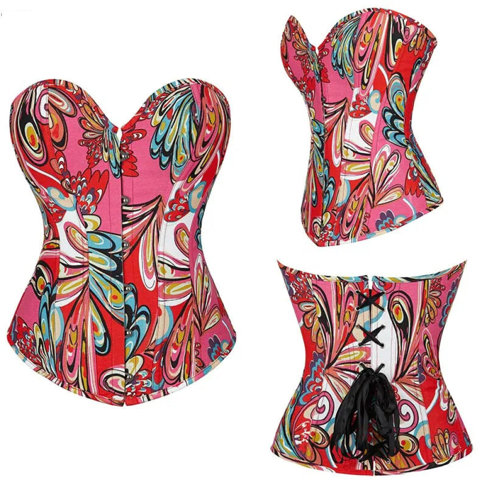 • 1 x Green Bustier Corset Top With Thong Front 6 Busk Back Lace Plus Size Alluring Lingerie For Busty Women