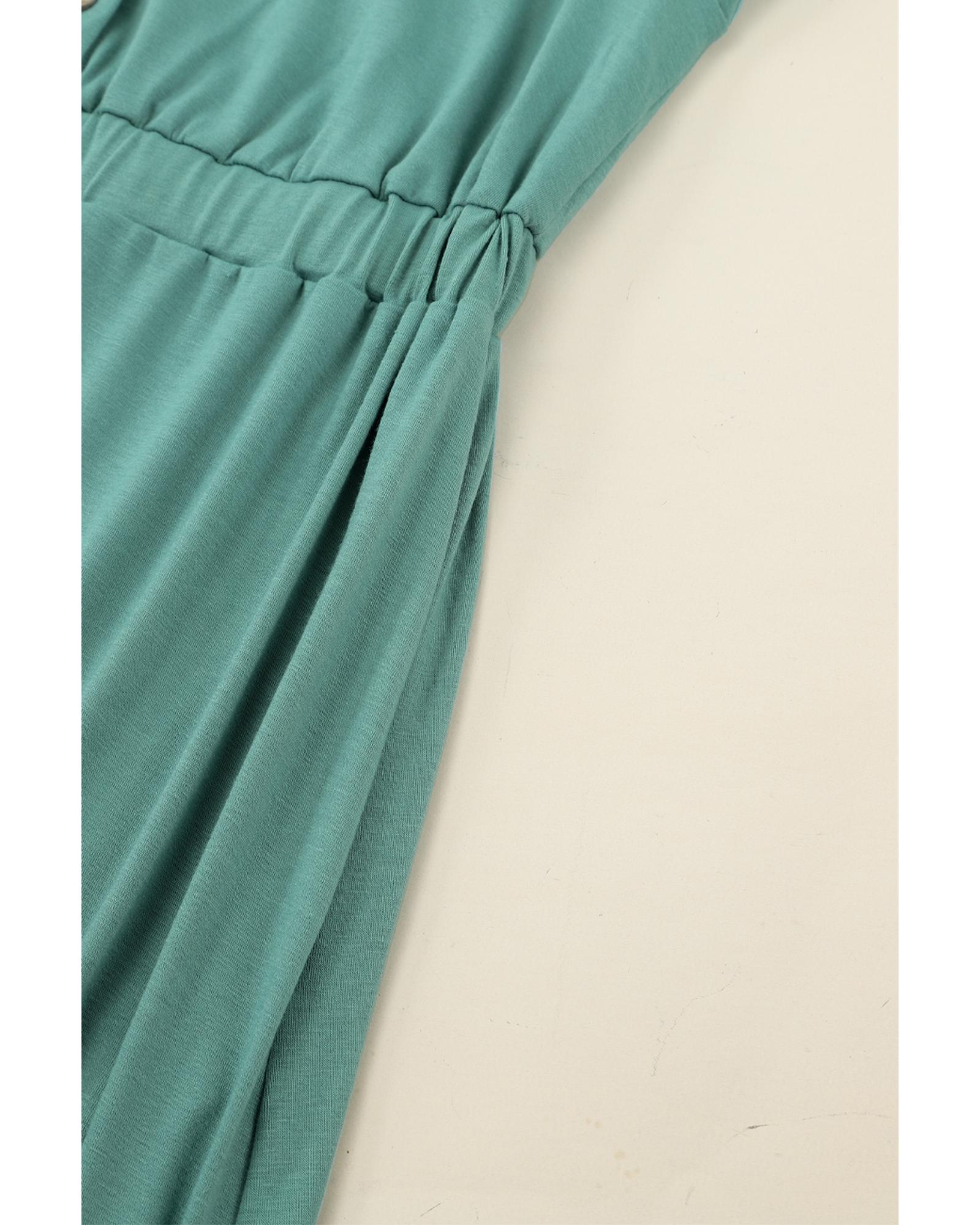 Rose Red Floral Print Pleated Drawstring Flowy Midi Dress - M
