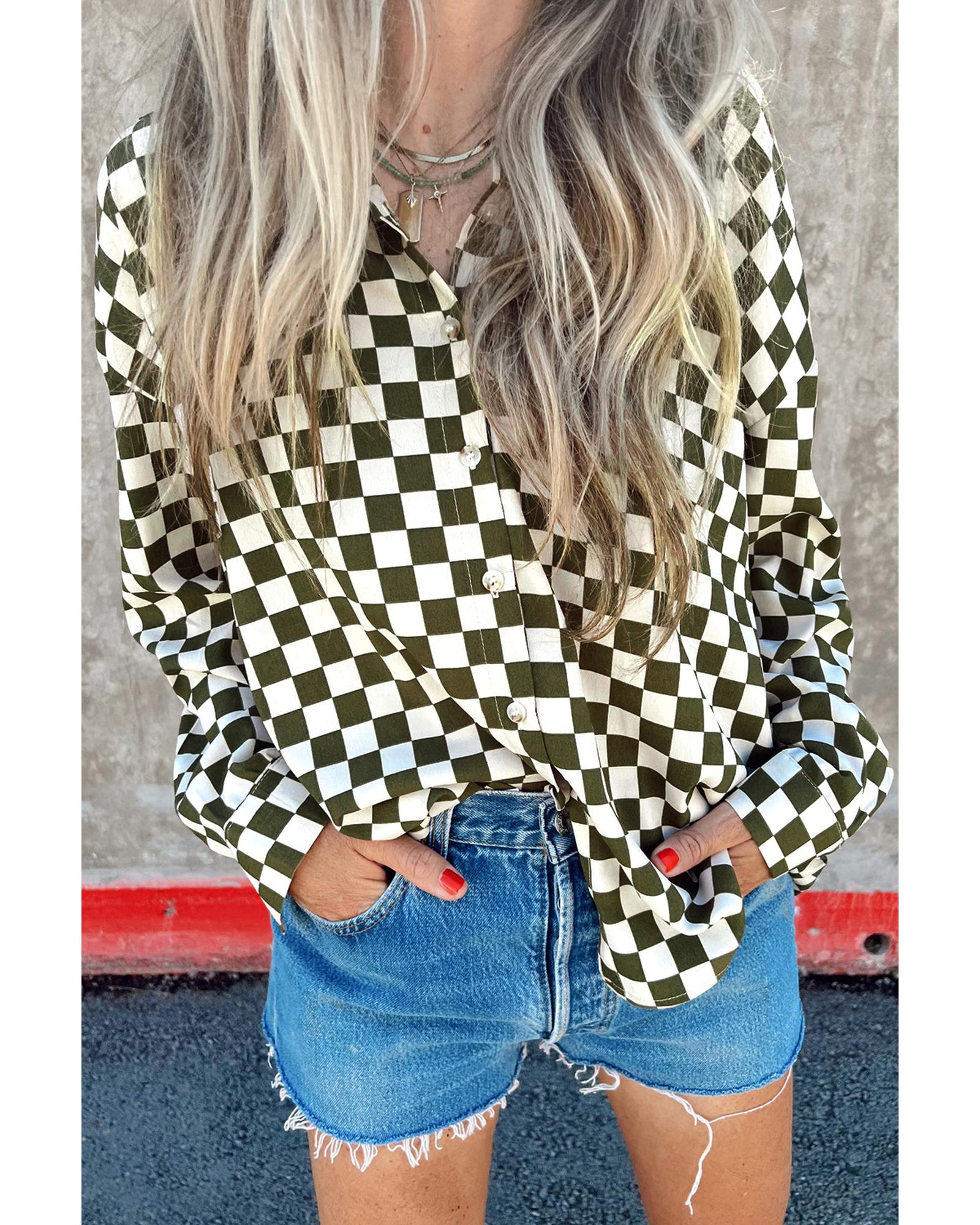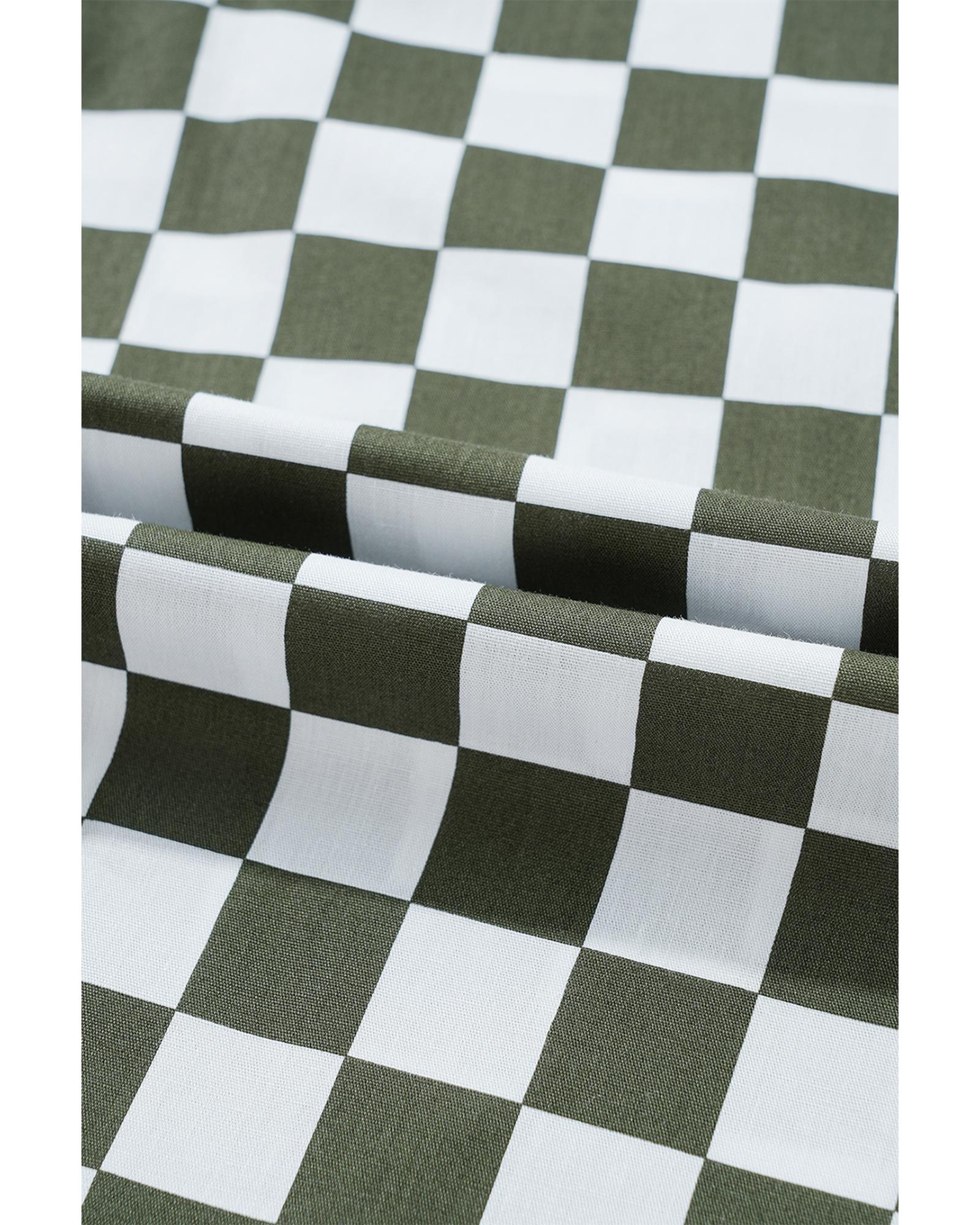 Green Checkerboard Printed Drop Shoulder Loose Casual Shirt – S