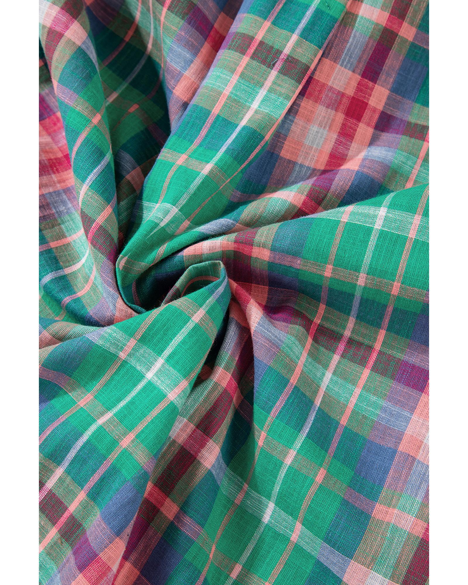 - Green Checkered 3/4 Sleeve Collared Loose Fit Shirt