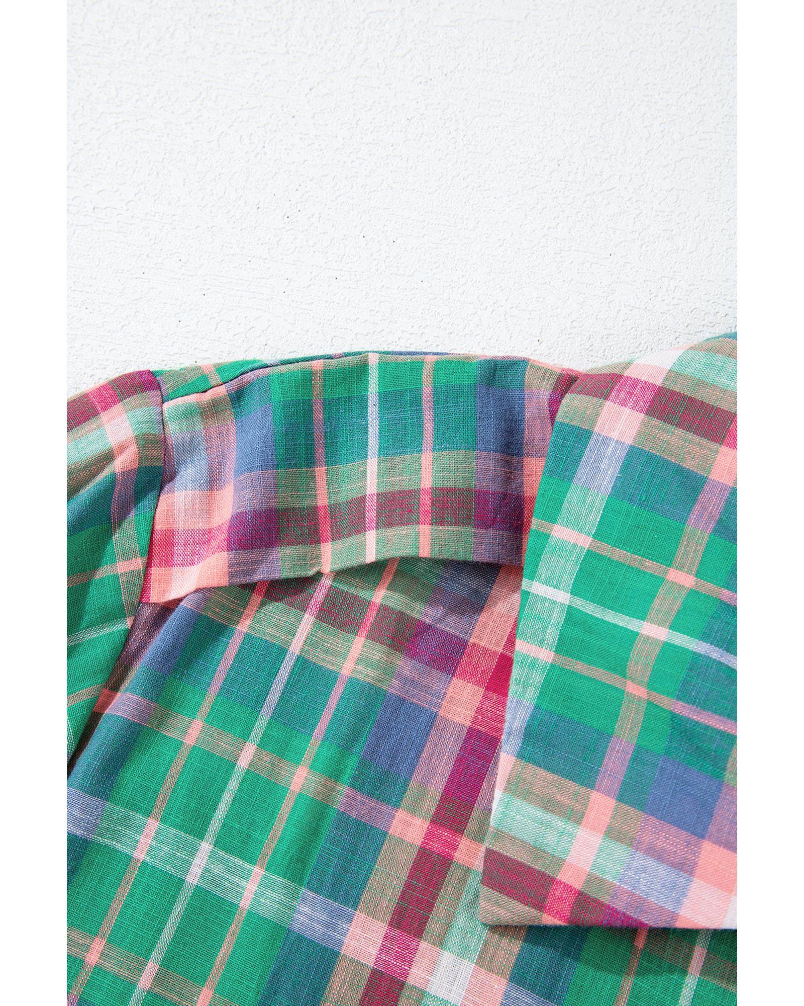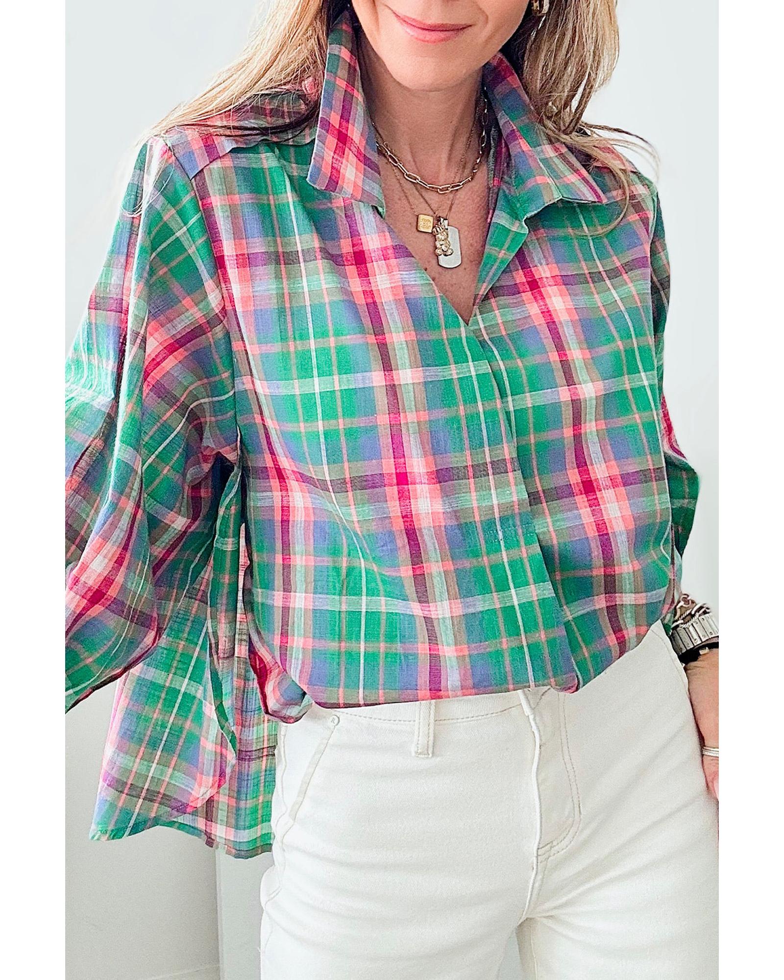 Green Checkered 3/4 Sleeve Collared Loose Fit Shirt – S