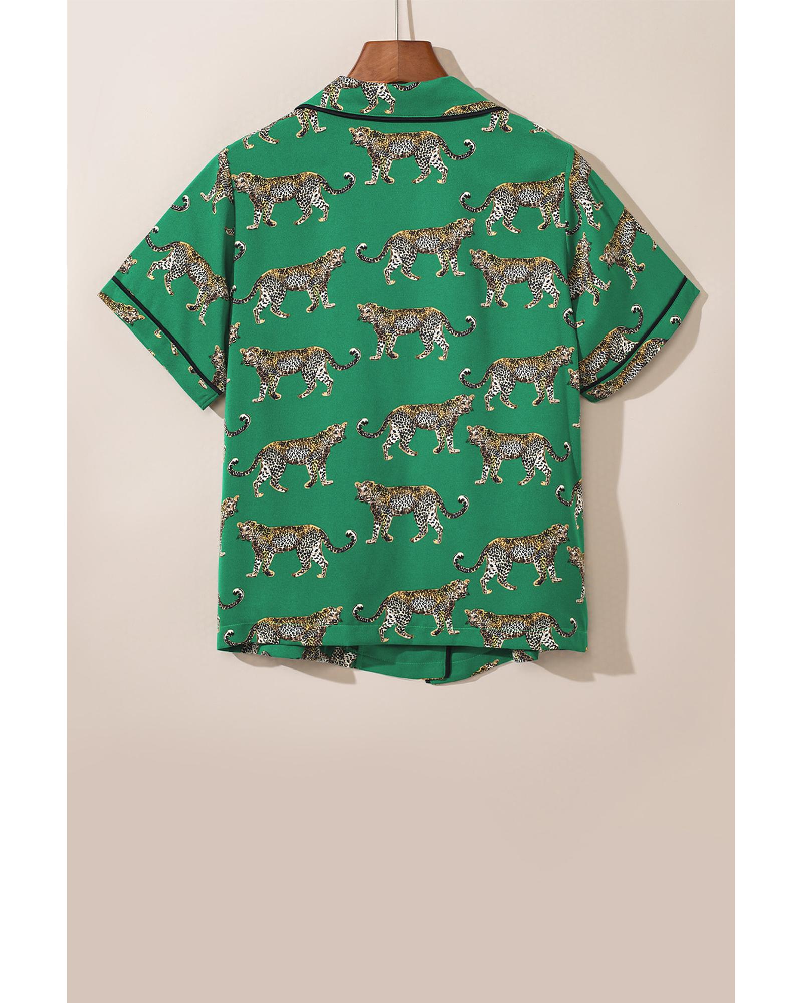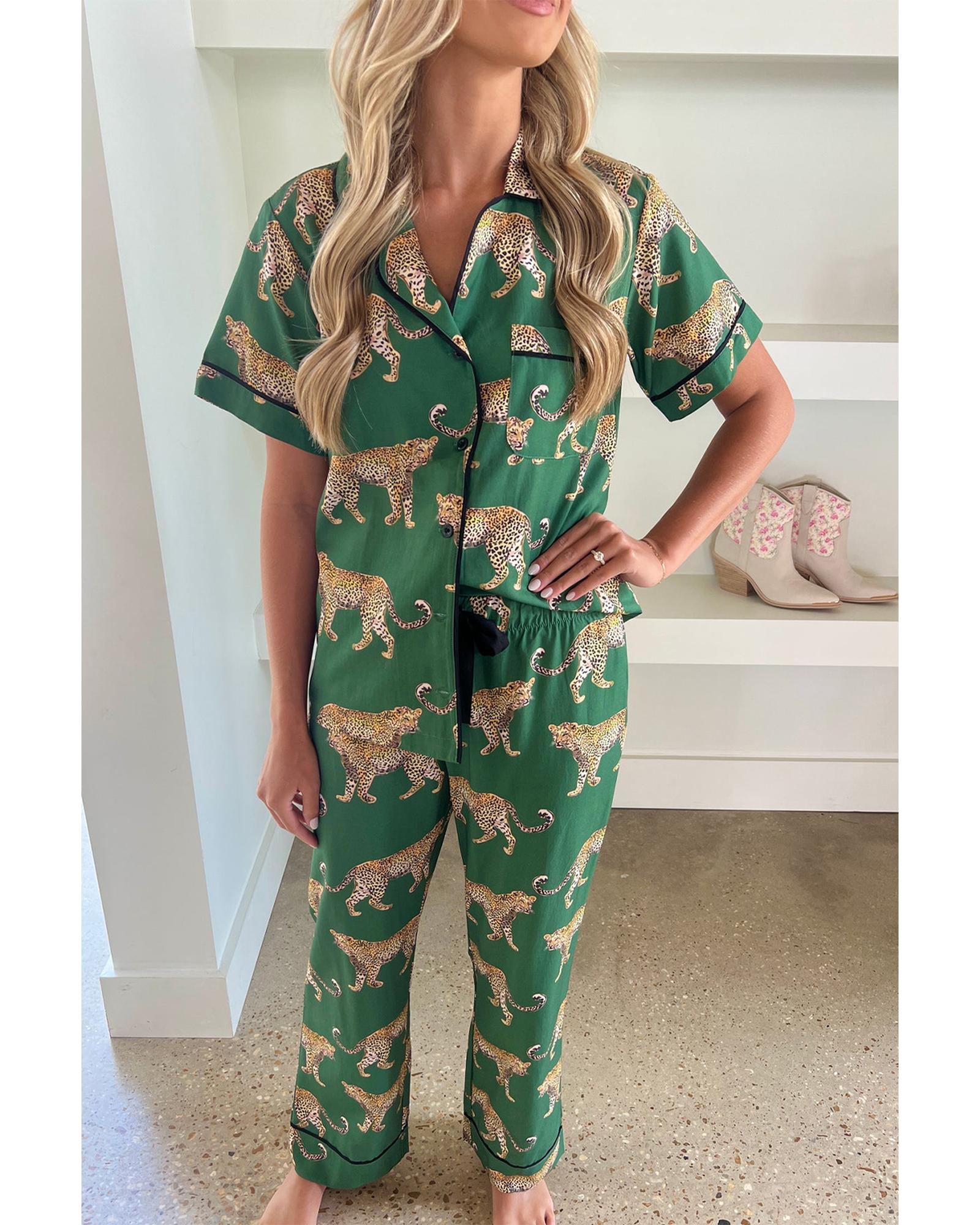Green Cheetah Print Short Sleeve Shirt and Pants Pajama Set – XL