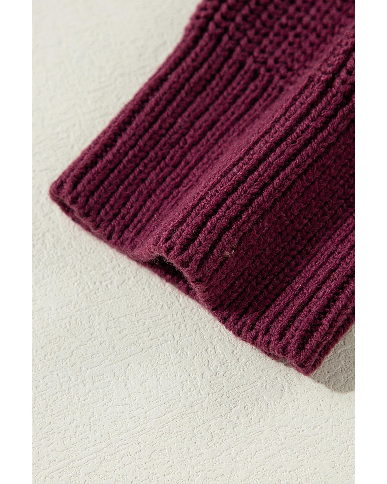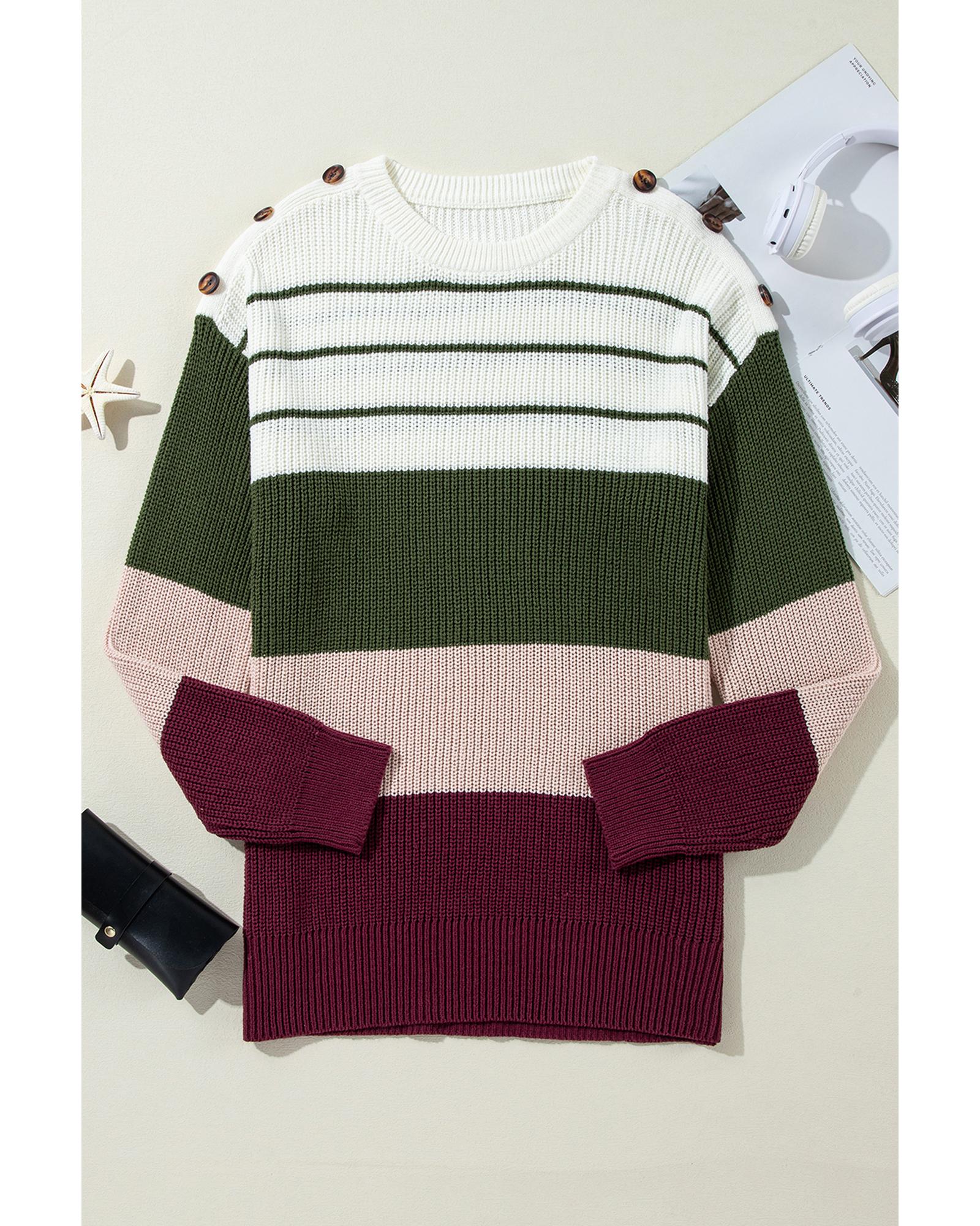 Green Color Block Striped Buttoned Shoulder Split Sweater – S