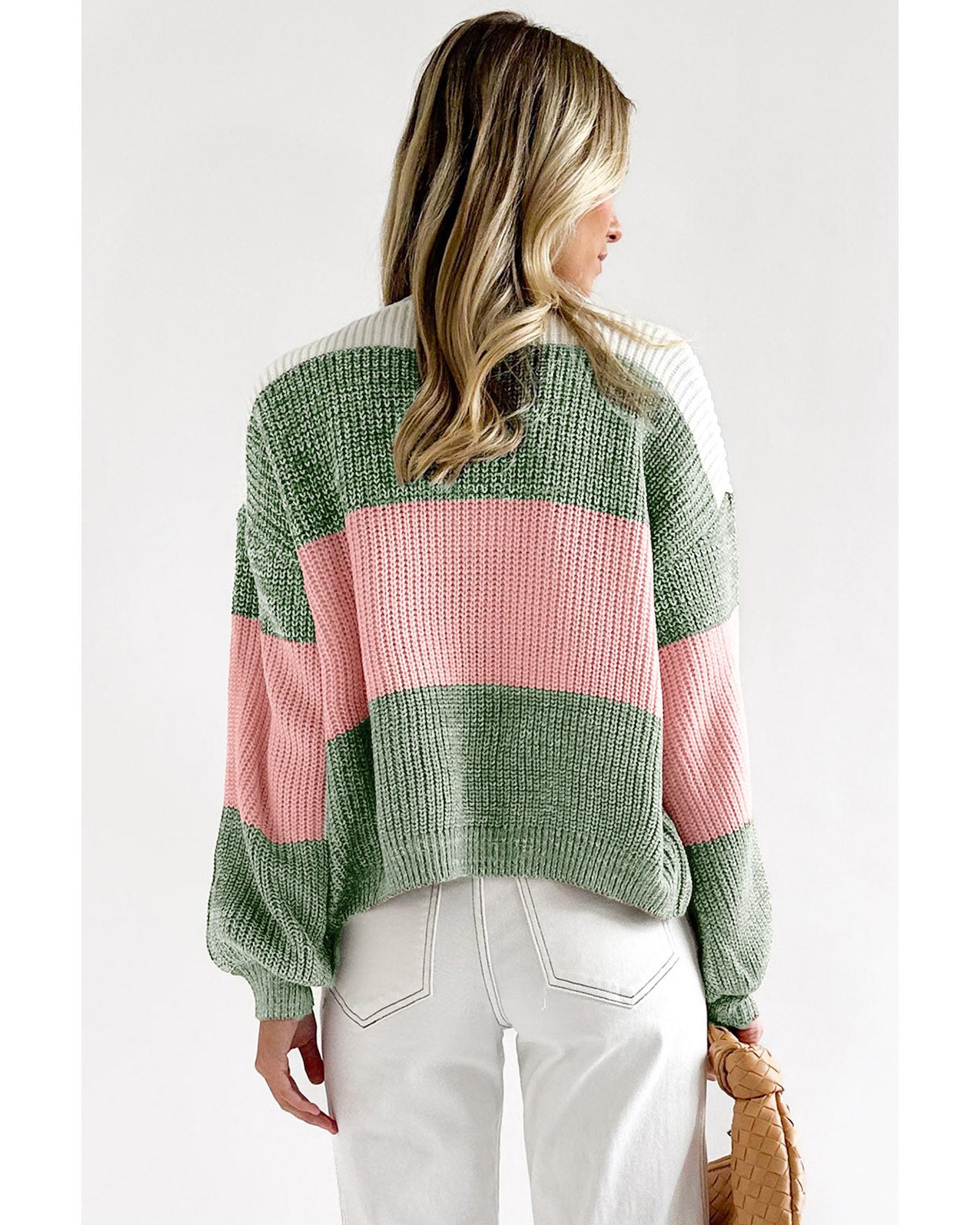 Green Colorblock Drop Shoulder Pullover Loose Sweater – M