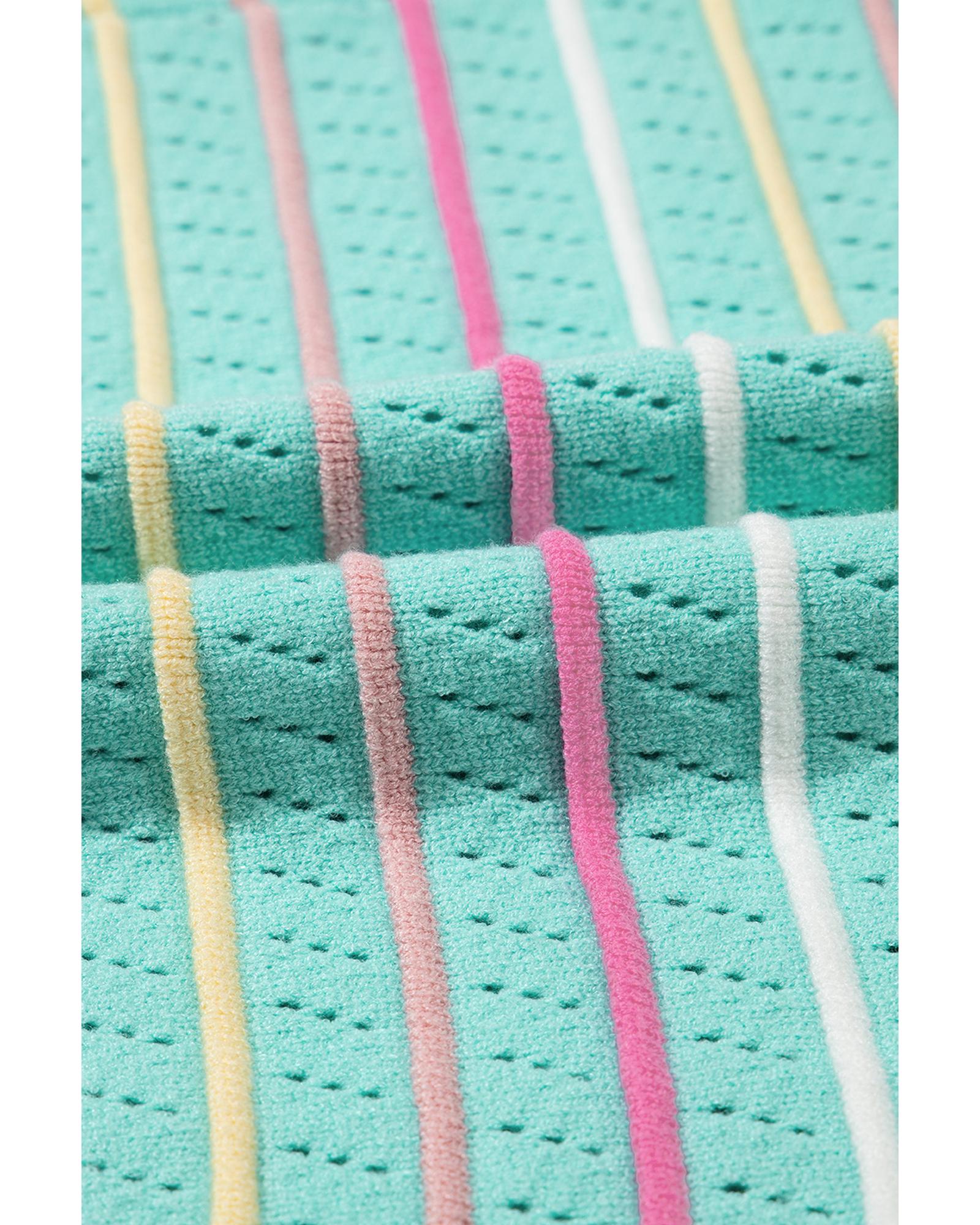 Green Colorful Striped Eyelet Knit Ruffled Sleeve Sweater T Shirt – XL