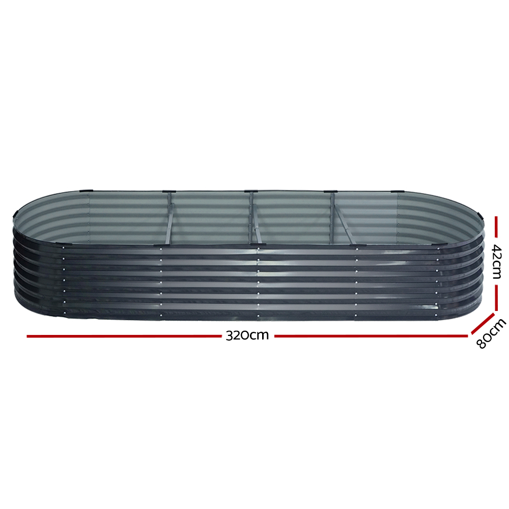 Green Fingers Garden Bed 320X80X42cm Oval Planter Box Raised Container Galvanised