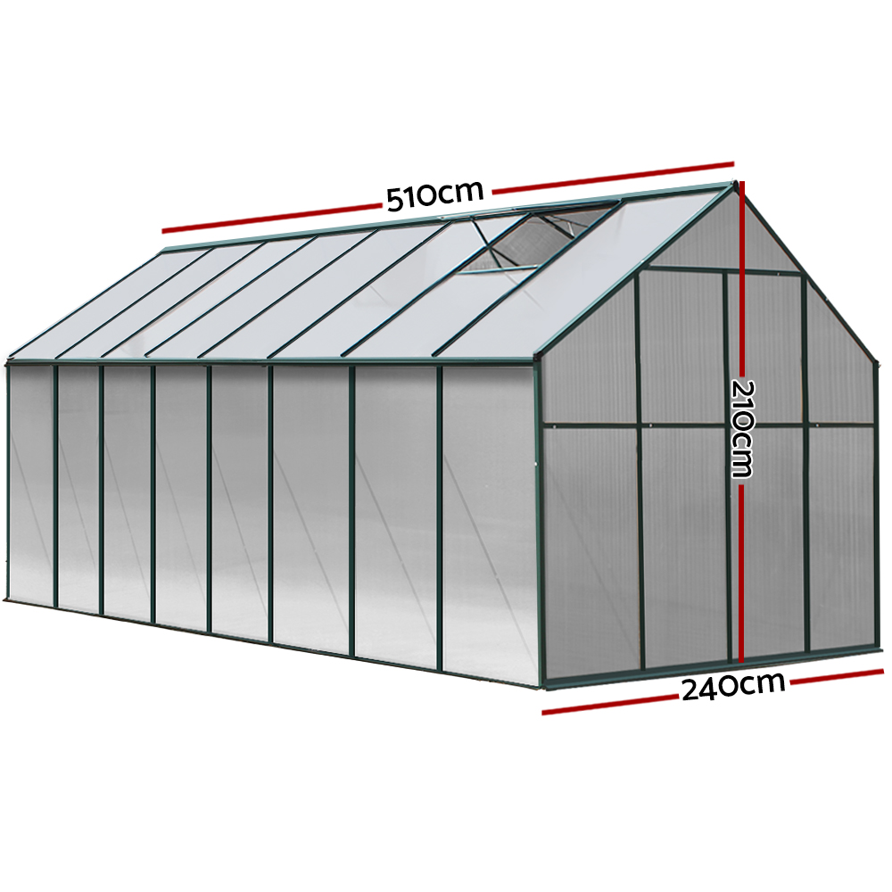 Green Fingers Greenhouse 5.1×2.44×2.1M Aluminium Polycarbonate Green House Garden Shed