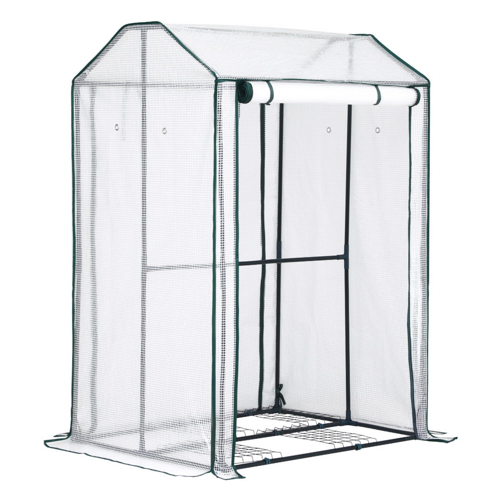 Green Fingers Mini Greenhouse PE Cover Green House Roll-Up Zippered Door 1.0×0.8×1.5M