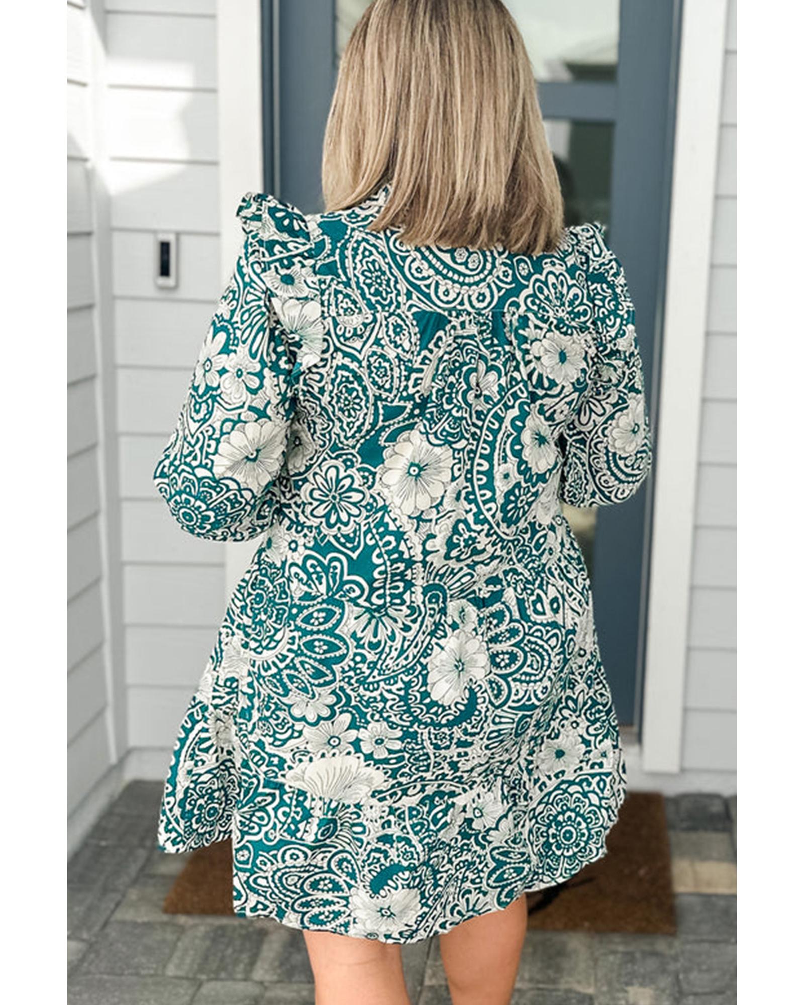 Green Floral Flounce Sleeve Split Neck Plus Size Dress – 4X