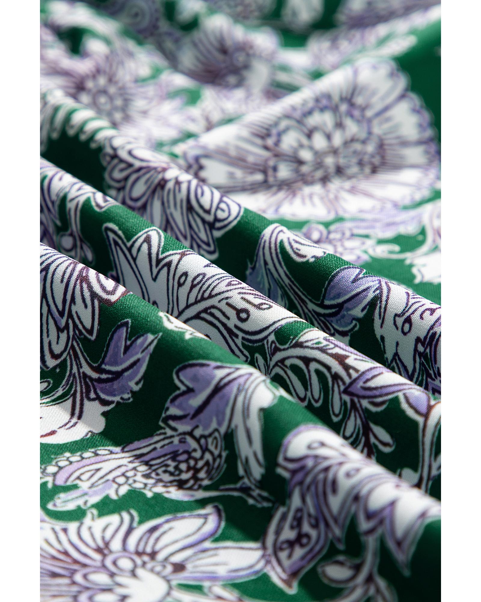 Green Floral Print Piping Trim Bubble Sleeve Square Neck Dress – S