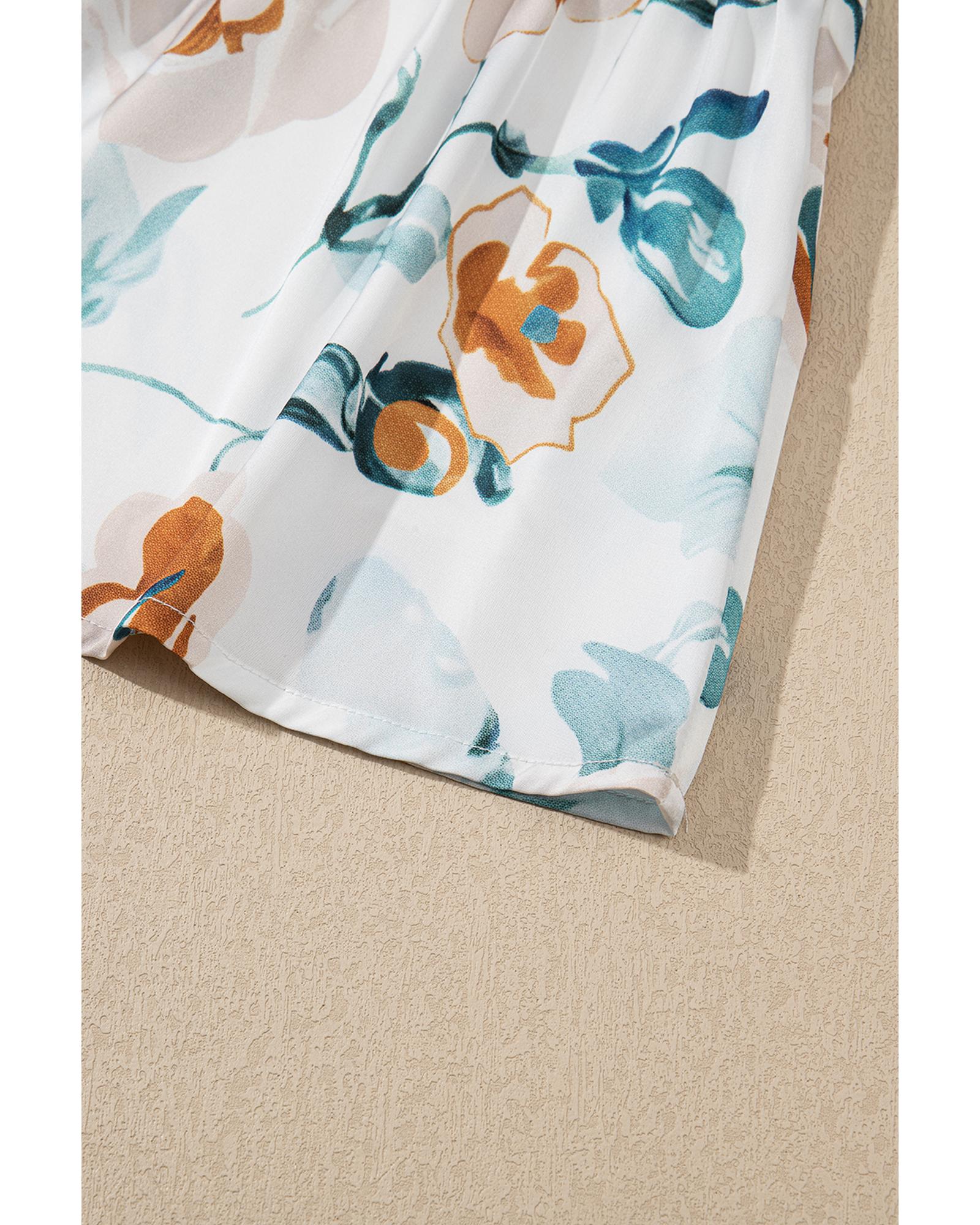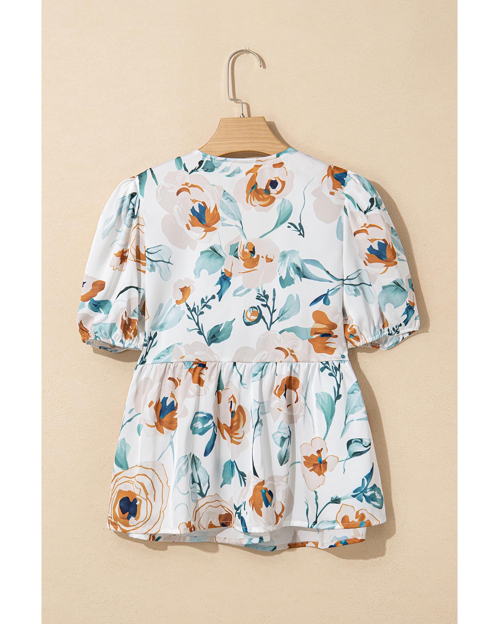 Green Floral Print Puff Sleeve V Neck Babydoll Blouse – XL