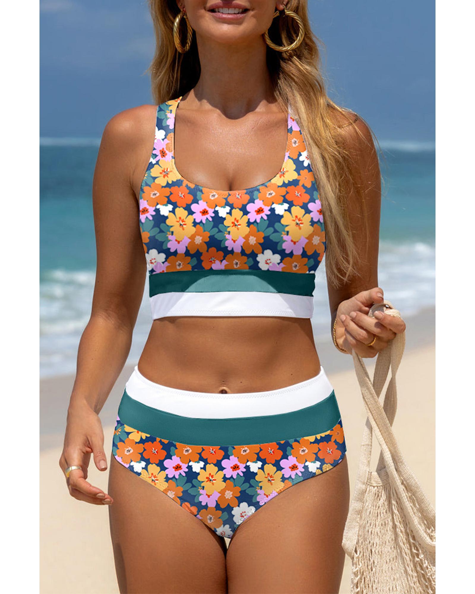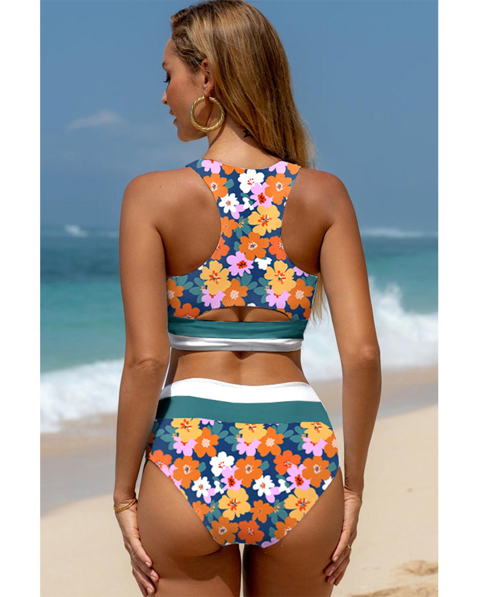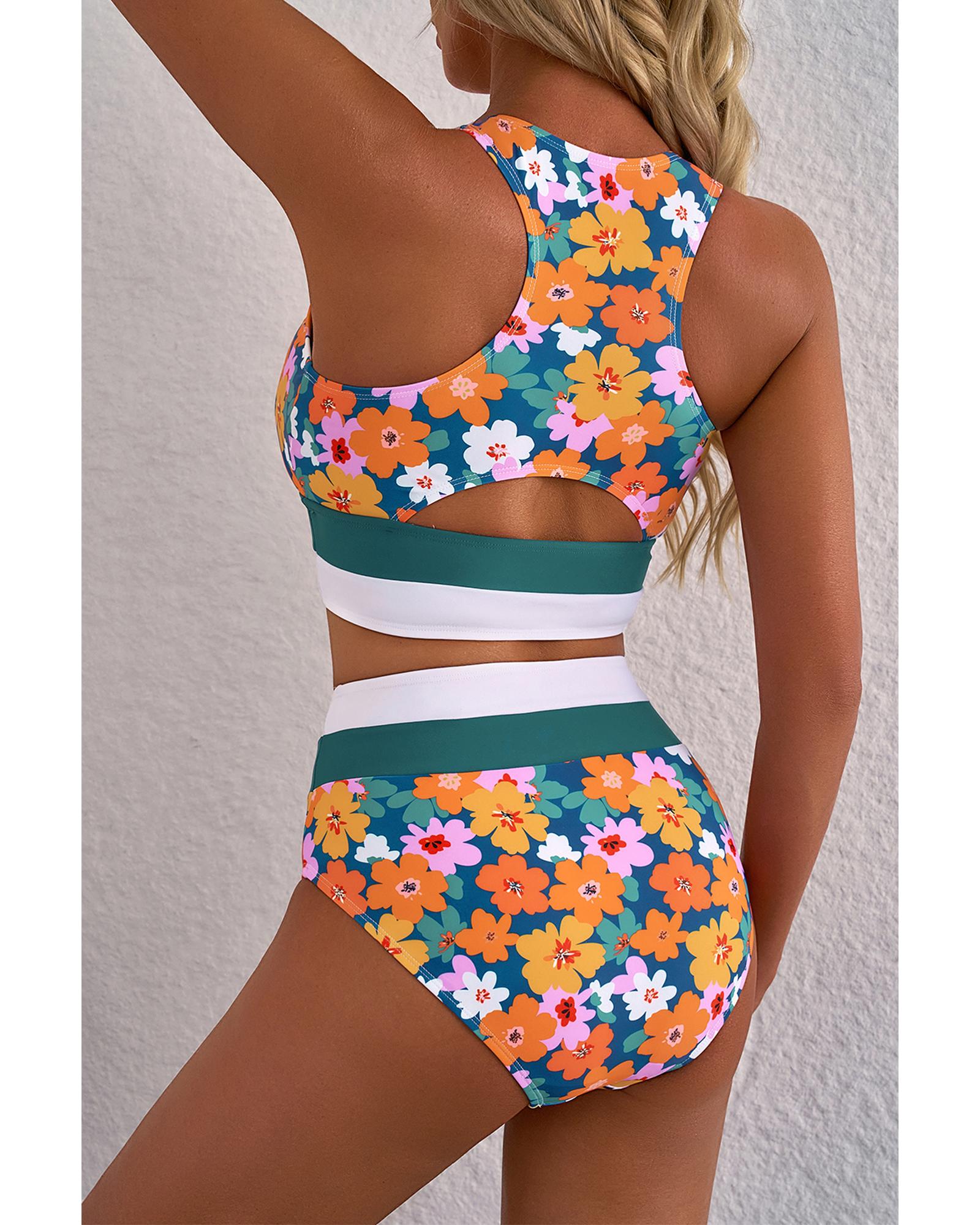 Green Floral Print Racerback Cutout High Waist 2pcs Bikini – XL
