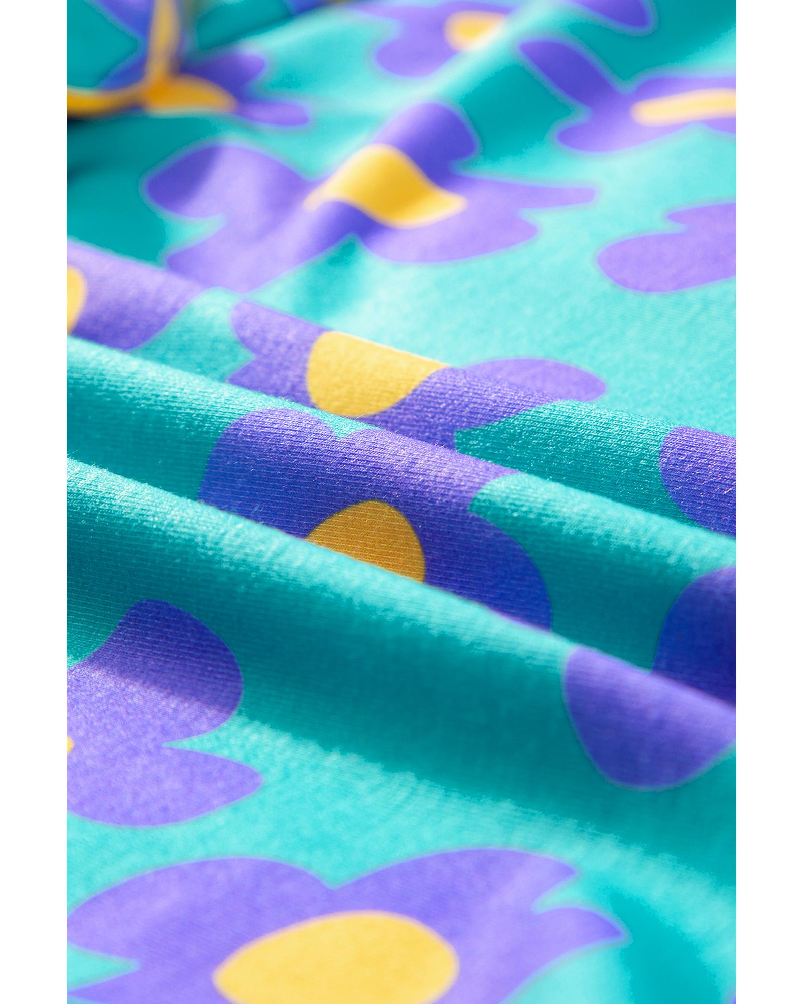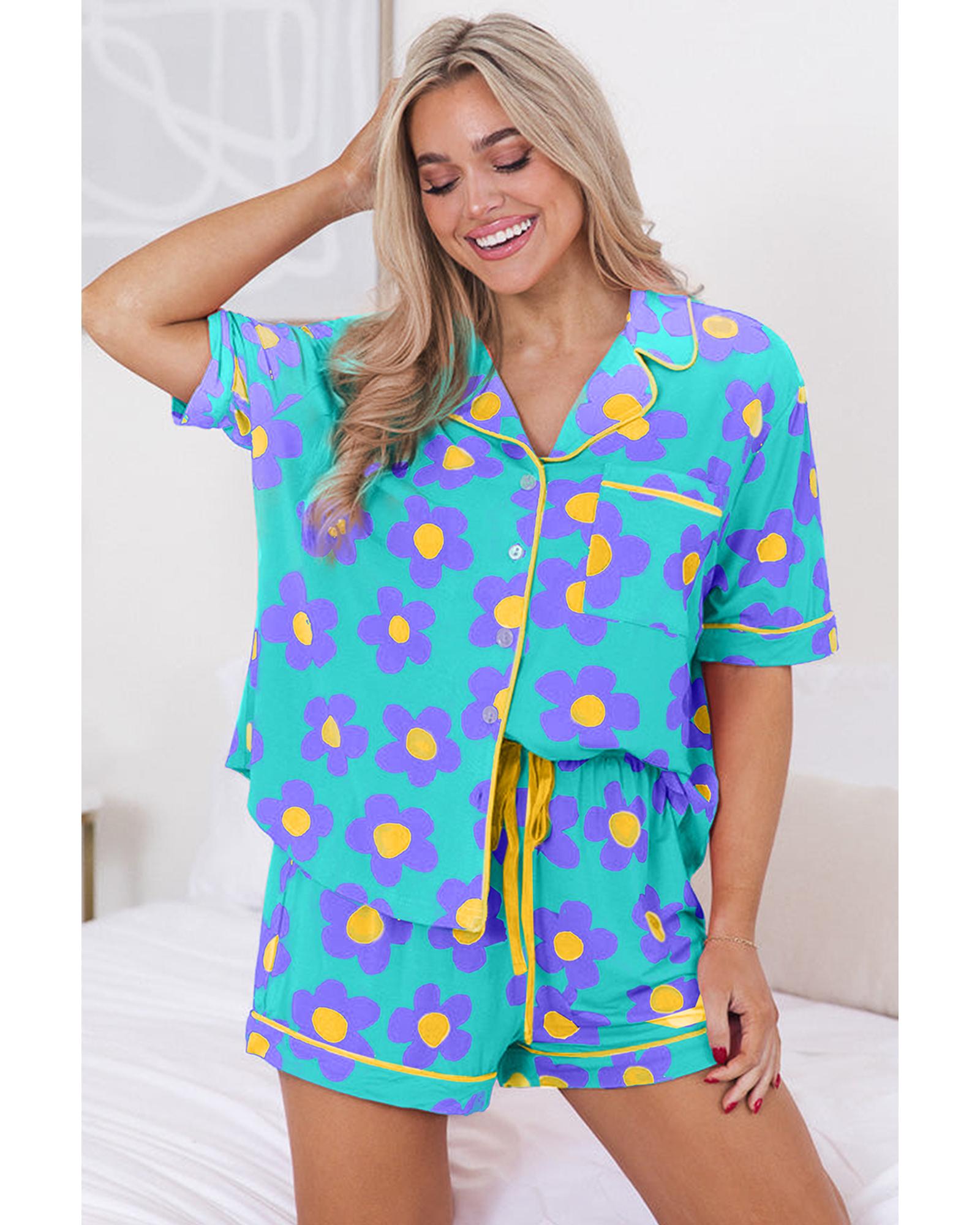 Green Flower Print Short Sleeve Shirt Pajamas Set – S