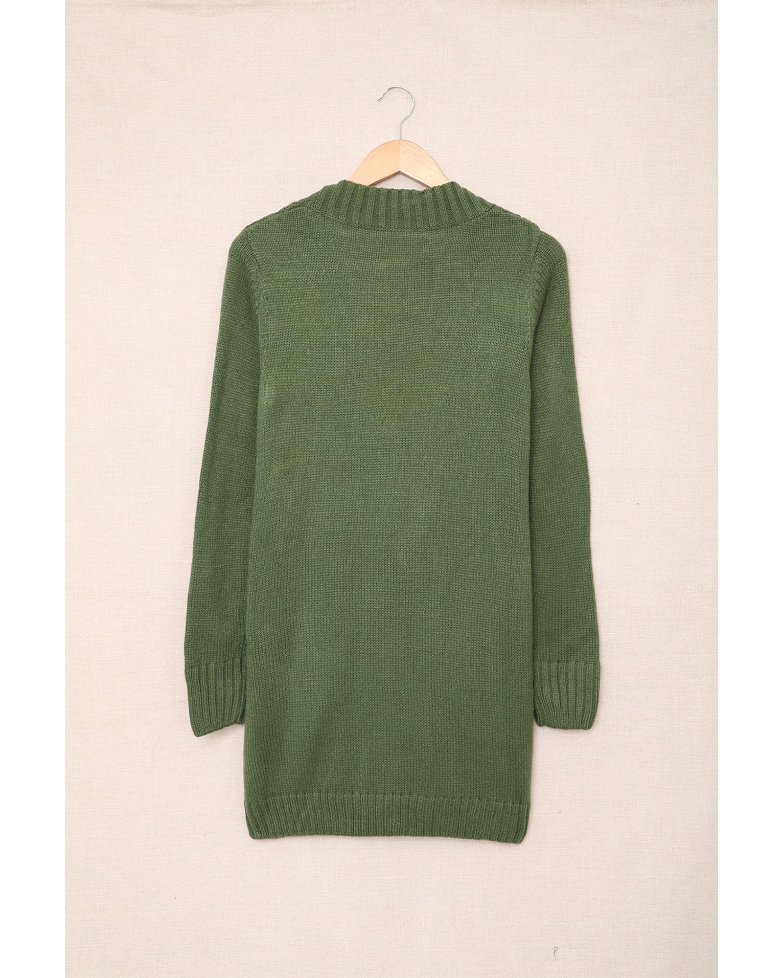 Green Front Pocket and Buttons Closure Cardigan – M