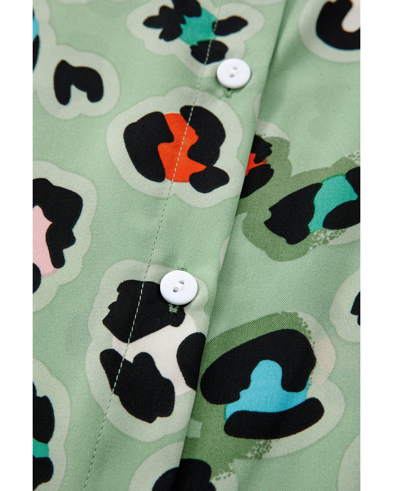 - Green Leopard Print Short Sleeve Shirt and Wide Leg Pants Set