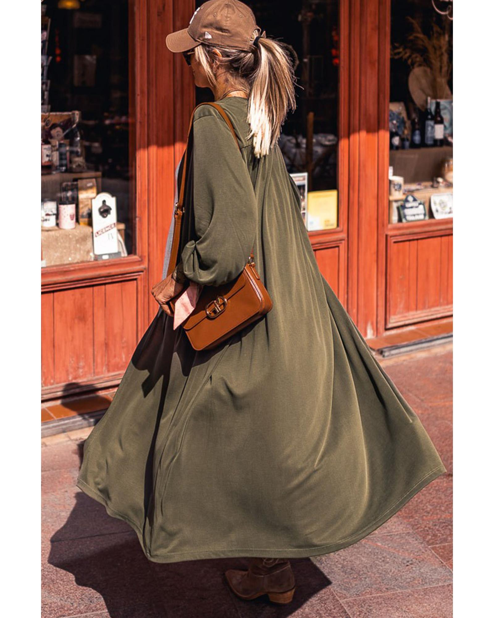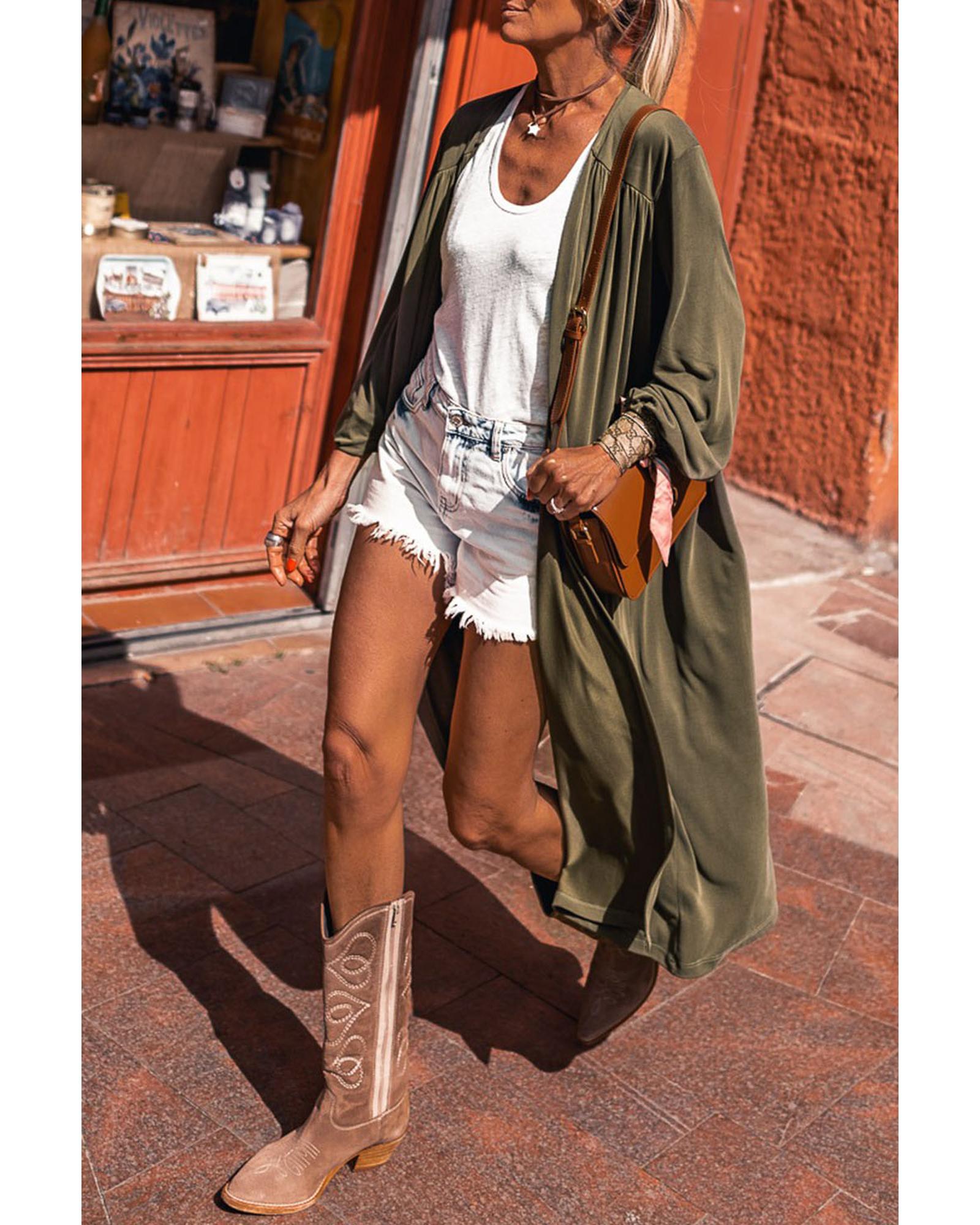 Green Lightweight Long Sleeve Open Front Duster Cardigan – L