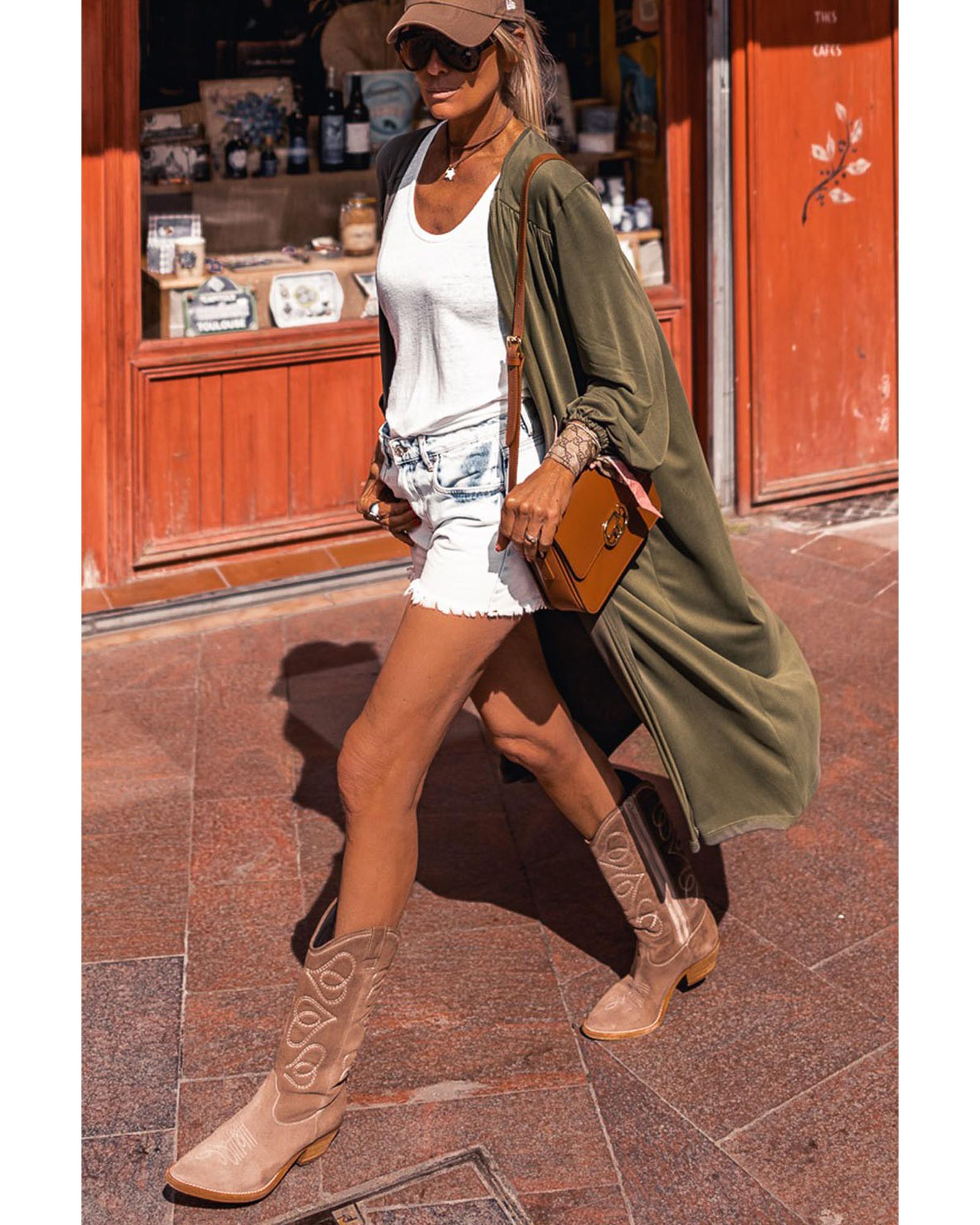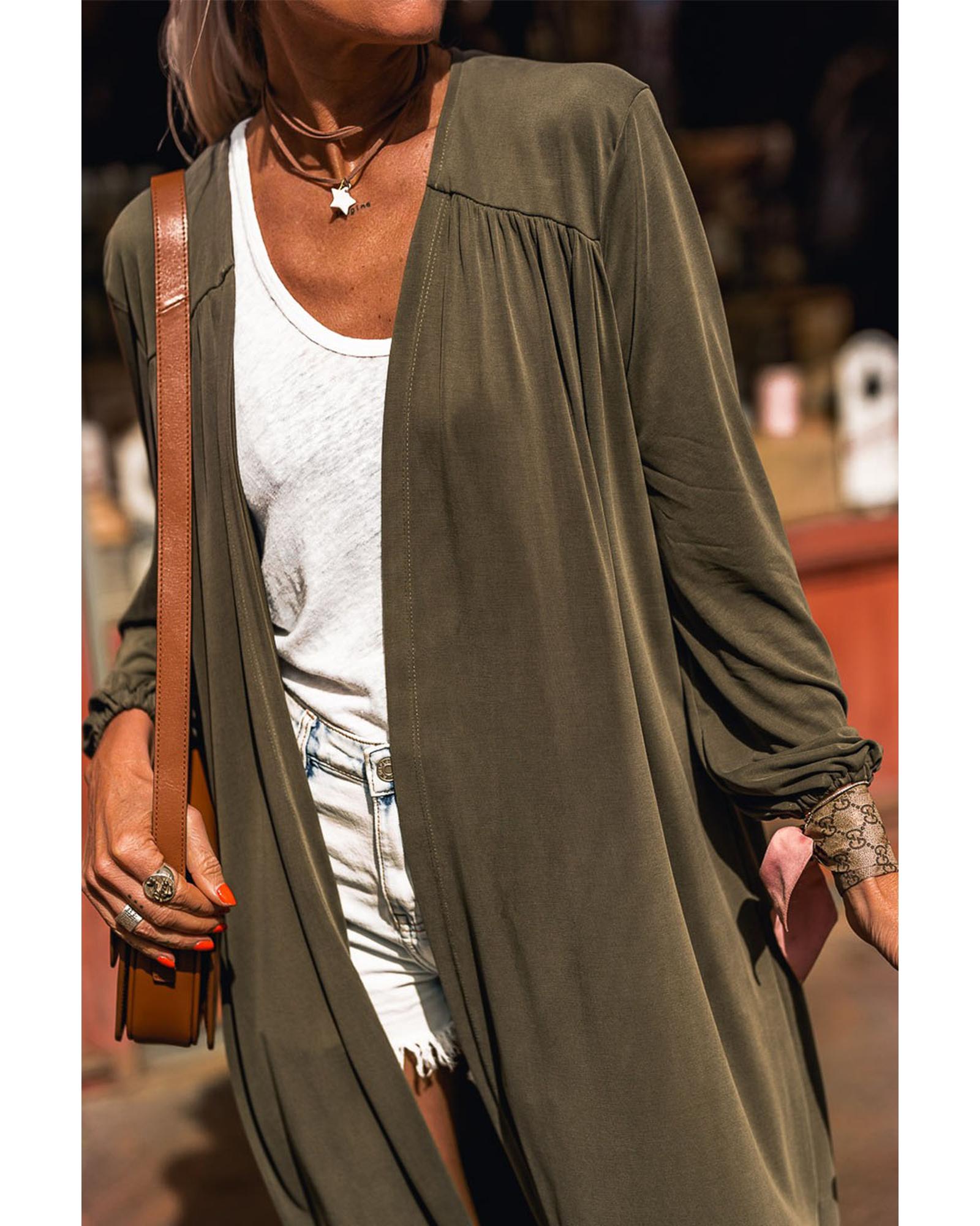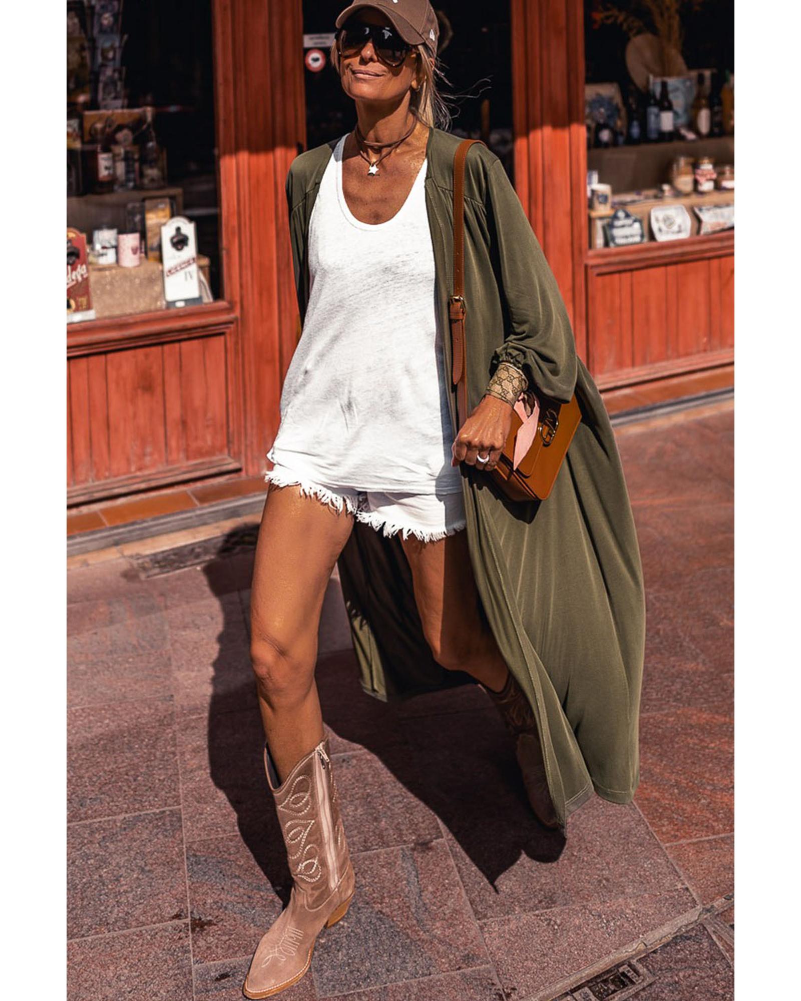Green Lightweight Long Sleeve Open Front Duster Cardigan – XL