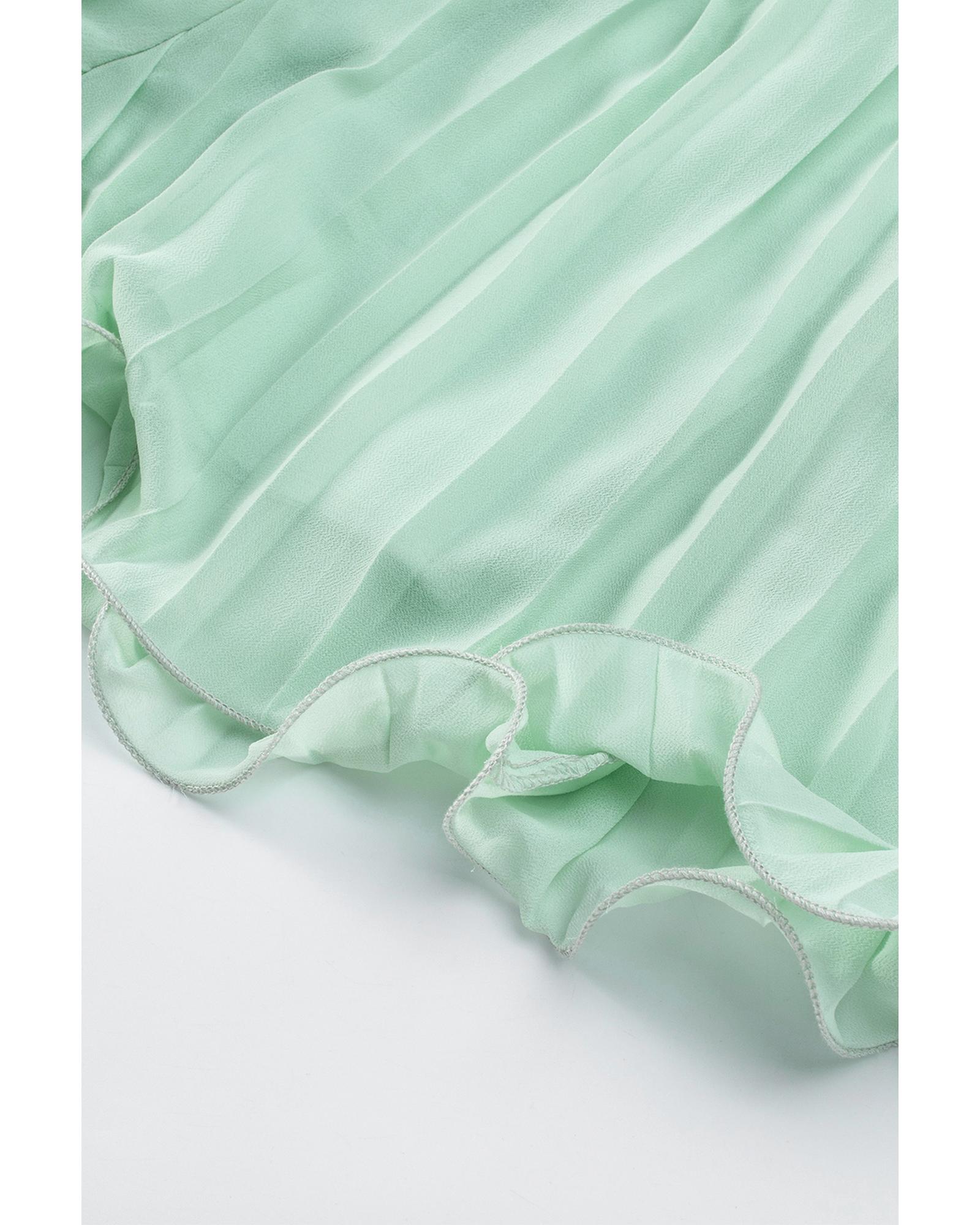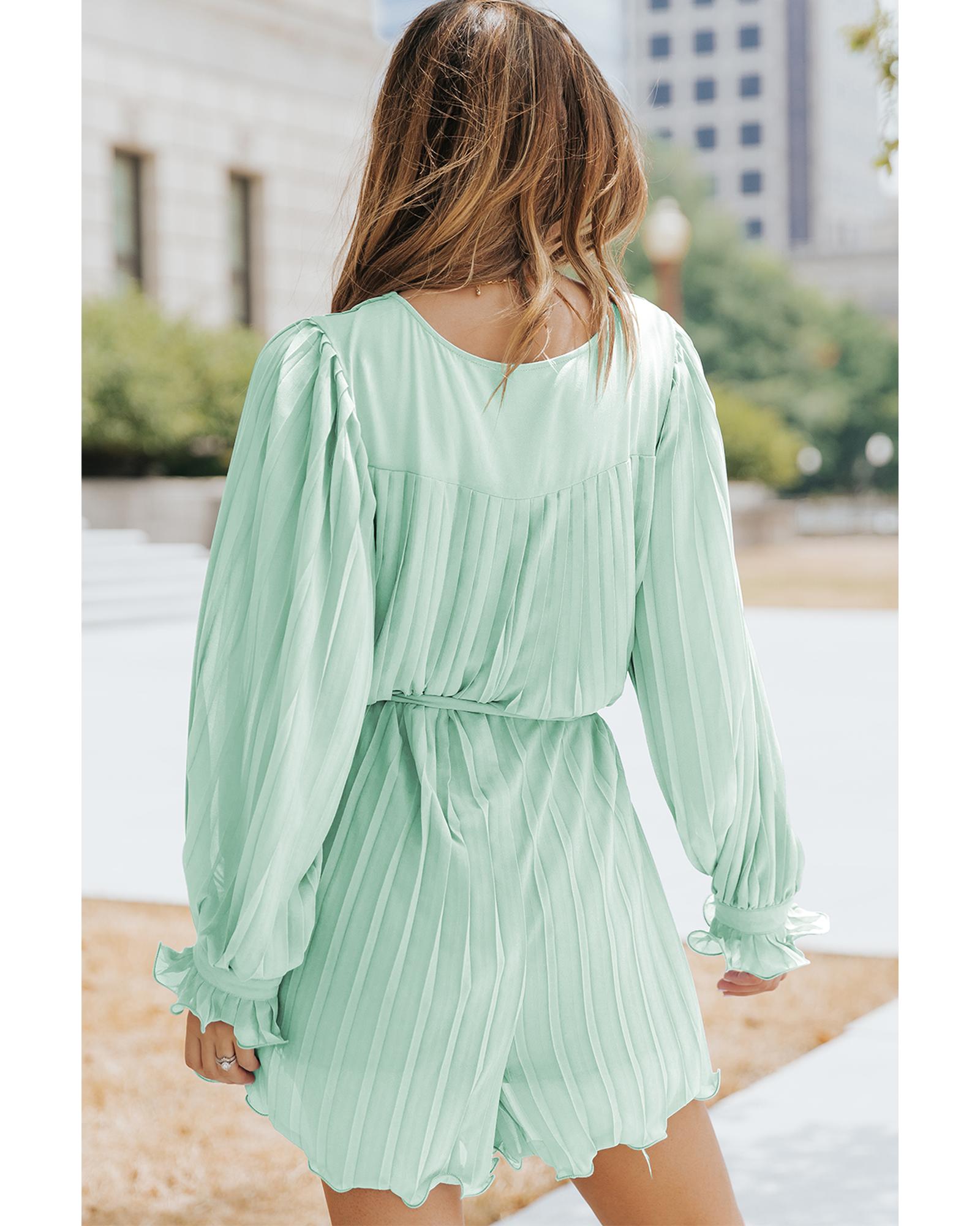 Green Pleated Ruffled Tie Waist Buttons V Neck Romper – XL
