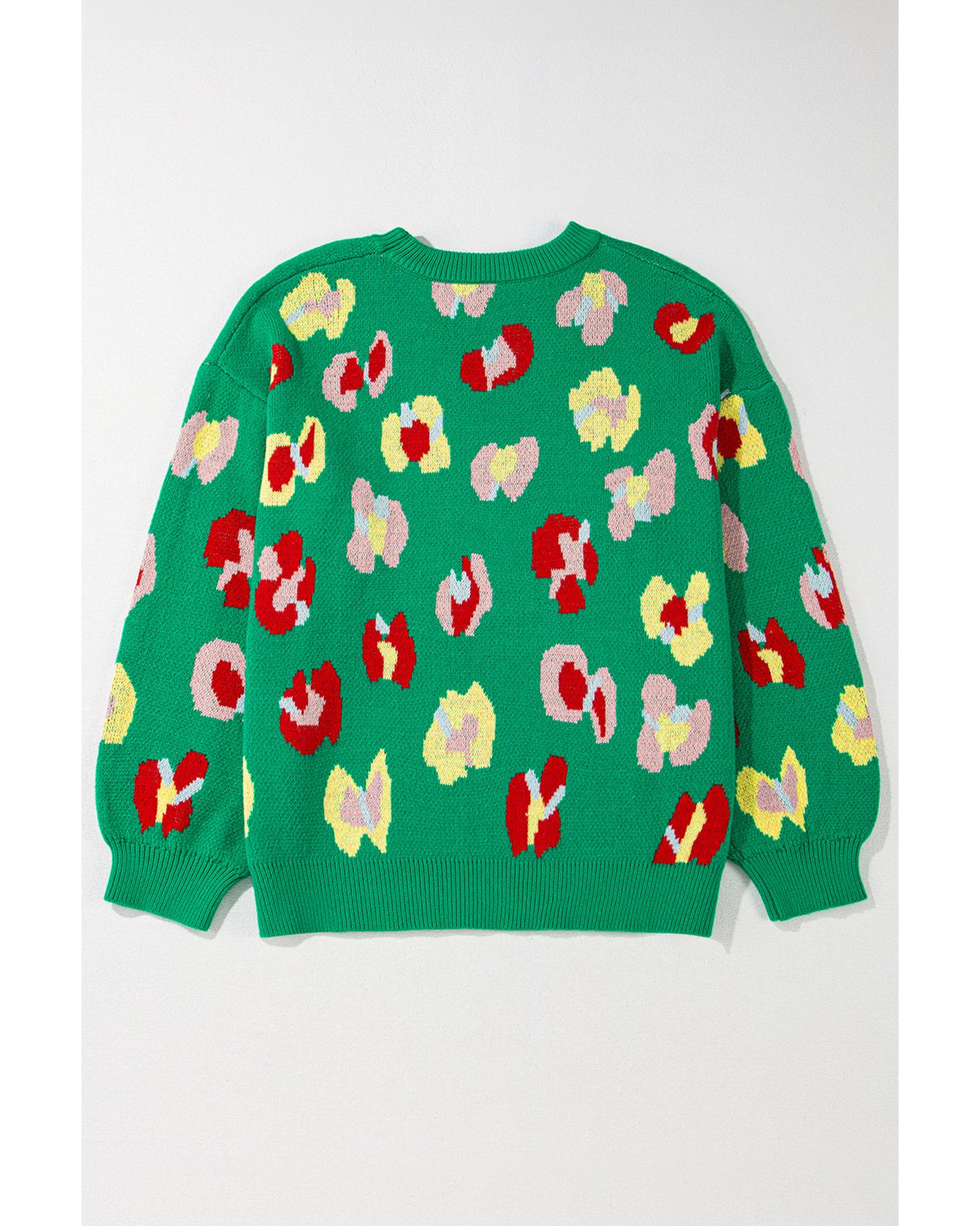 Green Plus Size Floral Knitted Ribbed Edge Drop Shoulder Sweater – 1X