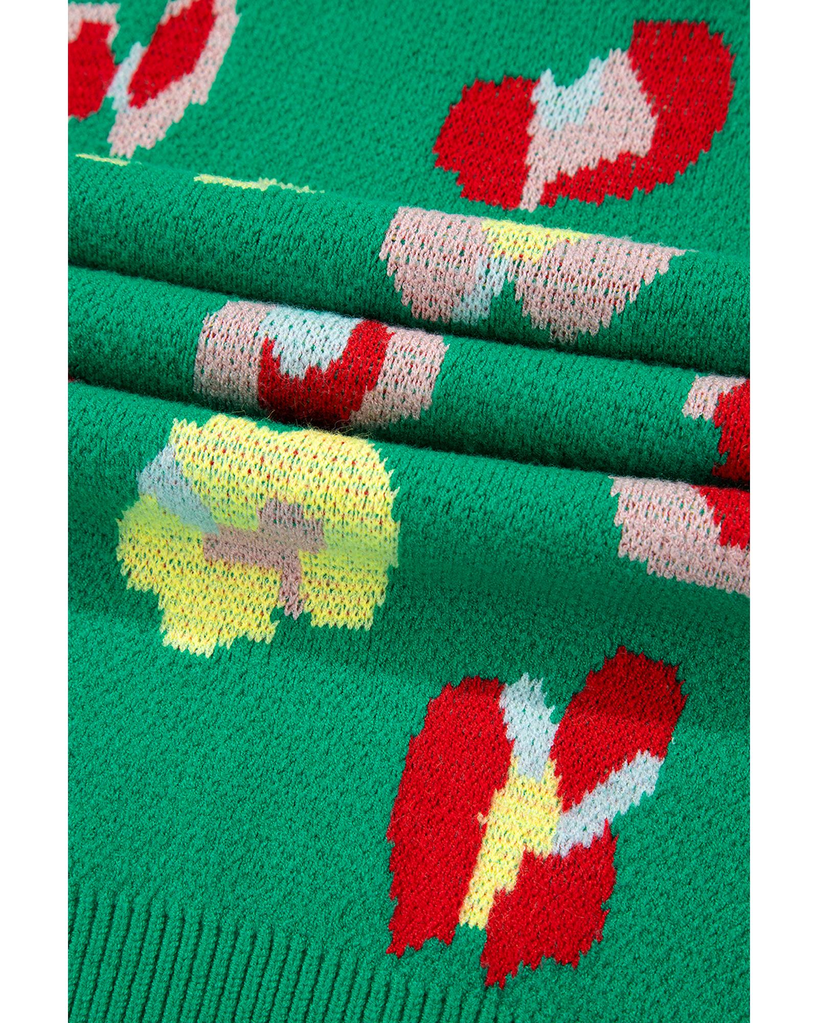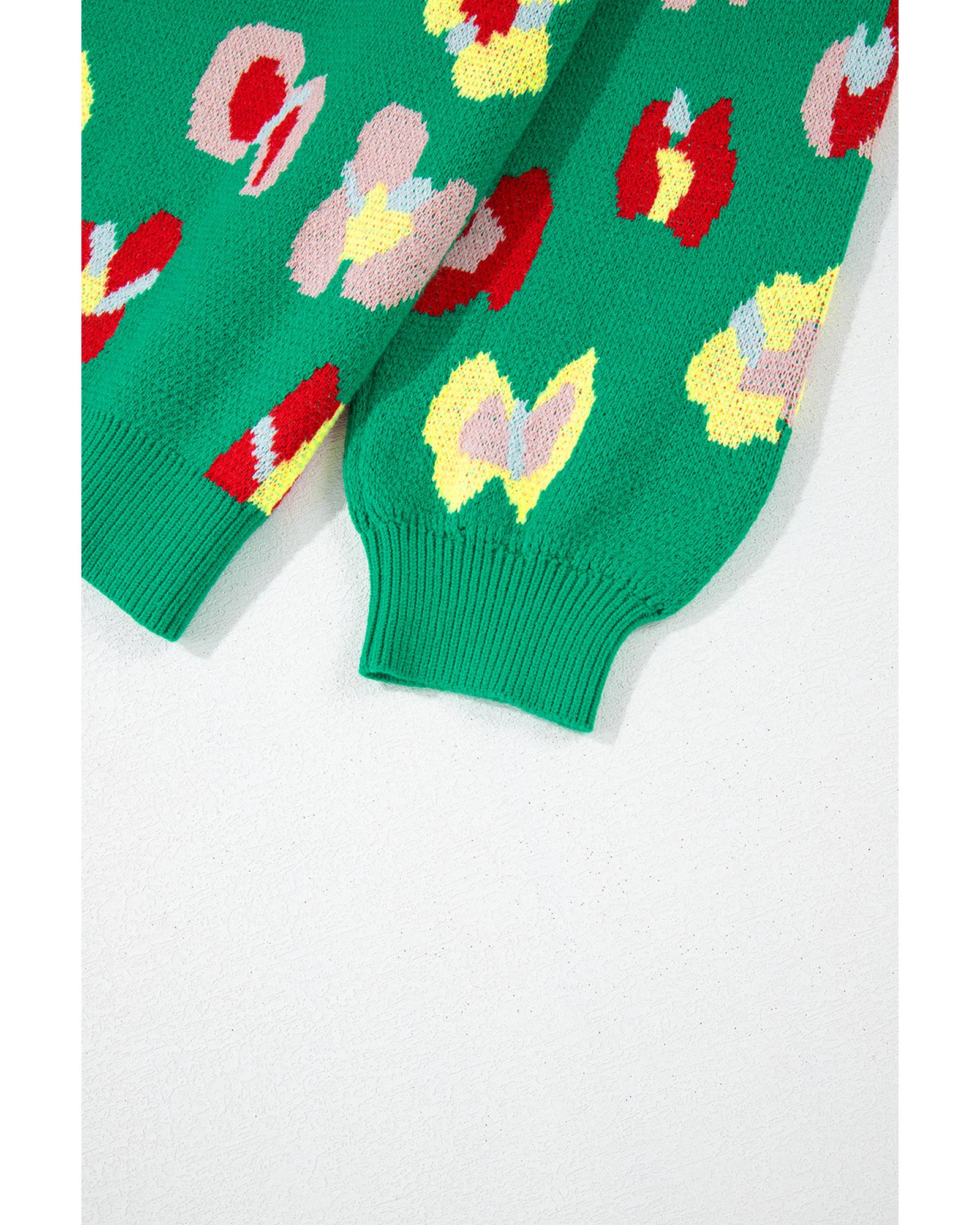 Green Plus Size Floral Knitted Ribbed Edge Drop Shoulder Sweater – 2X