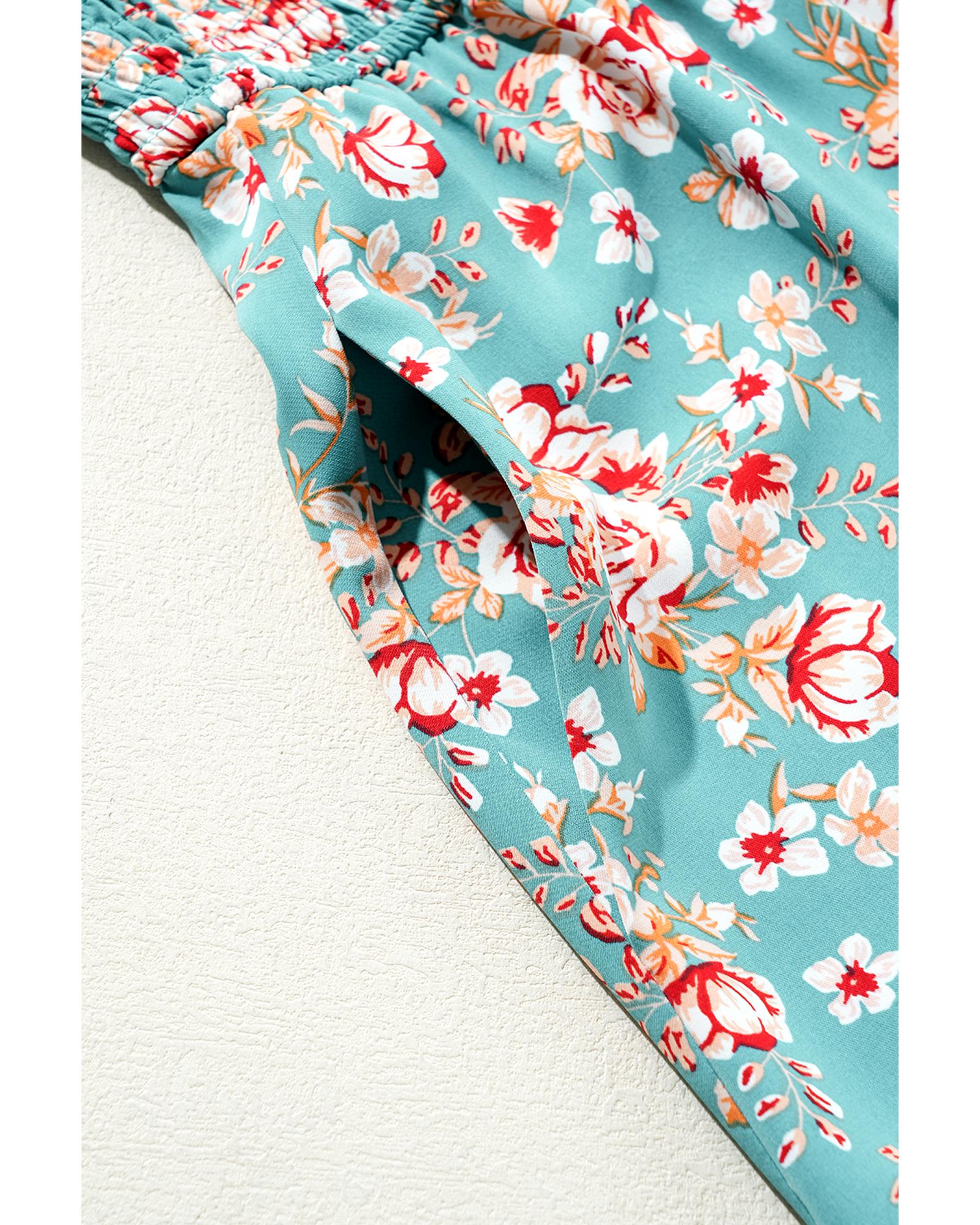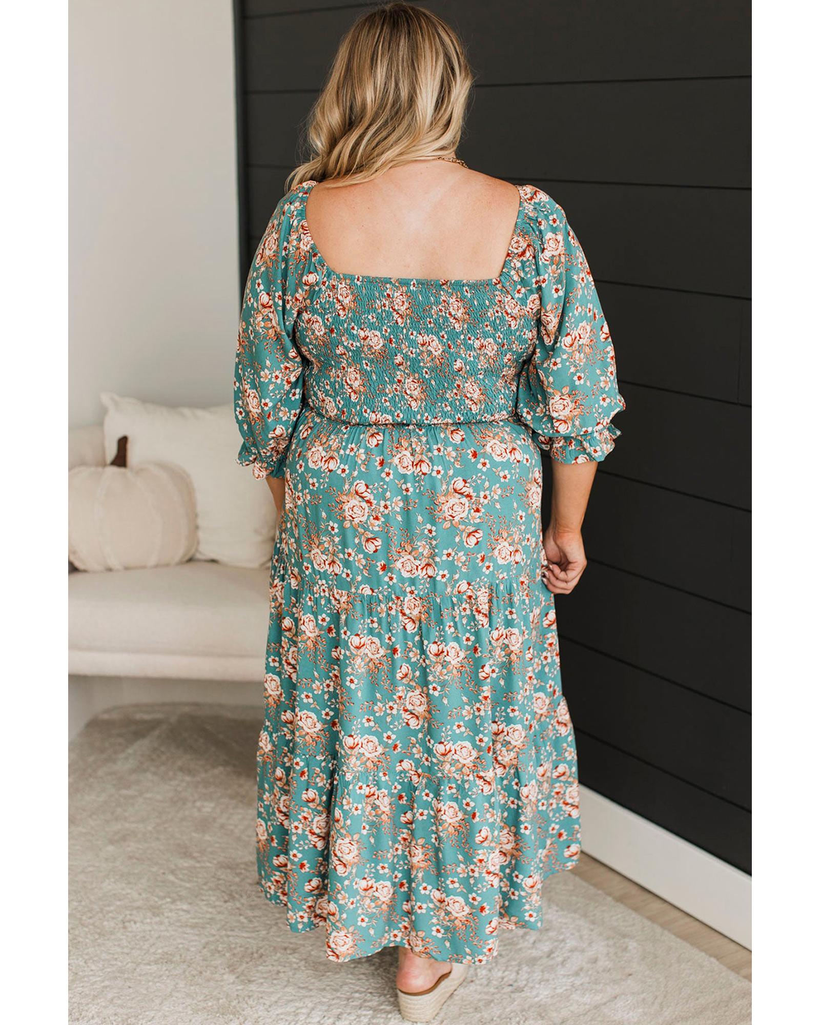 - Green Plus Size Floral Print Square Neck Smocked Maxi Dress
