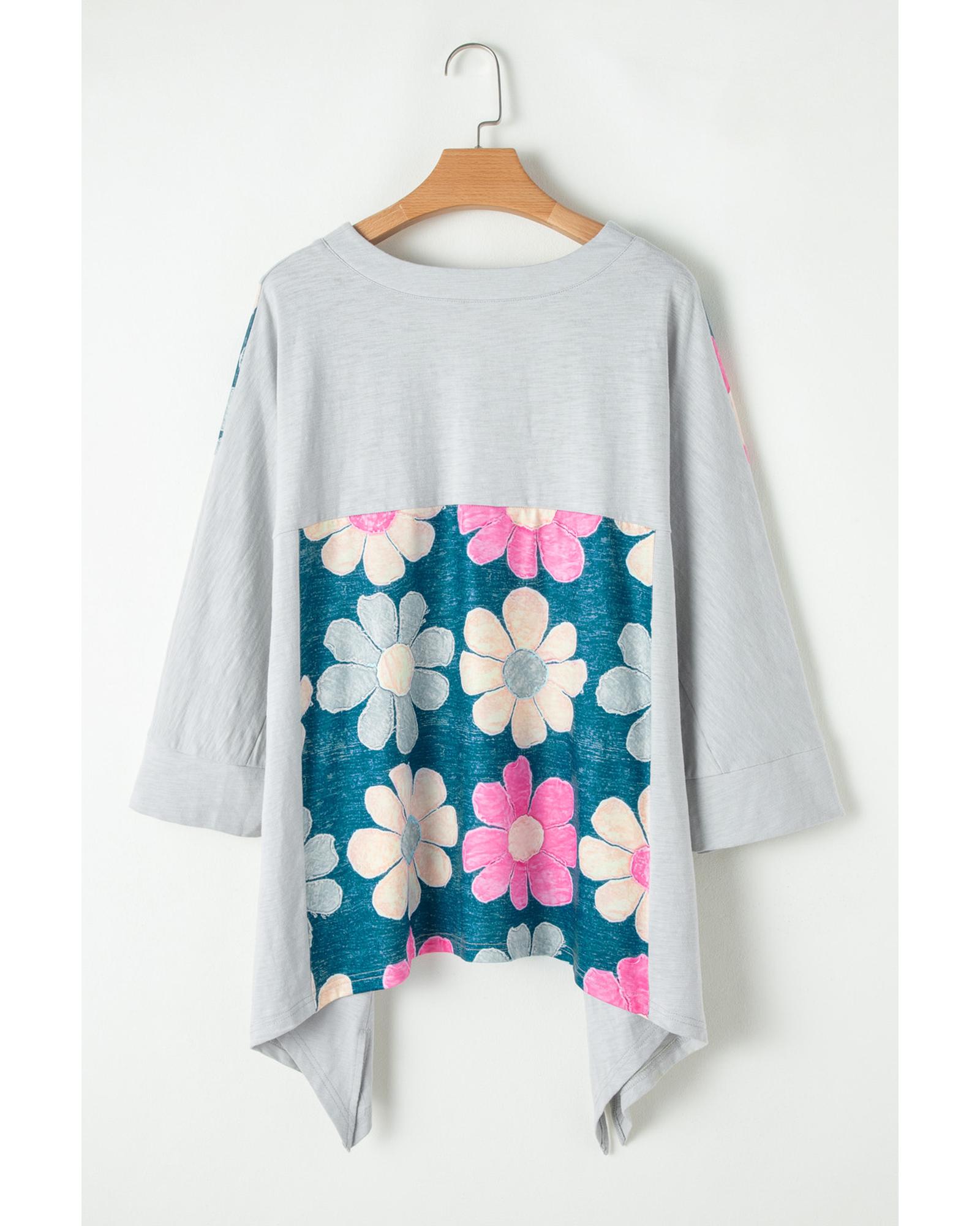 Green Plus Size Flower Patchwork Exposed Seam High Low Top - 3X