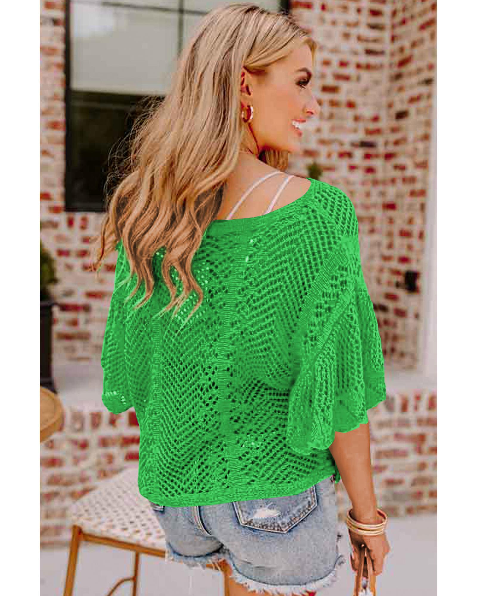 Green Pointelle Knit Scallop Edge Short Sleeve Top – M
