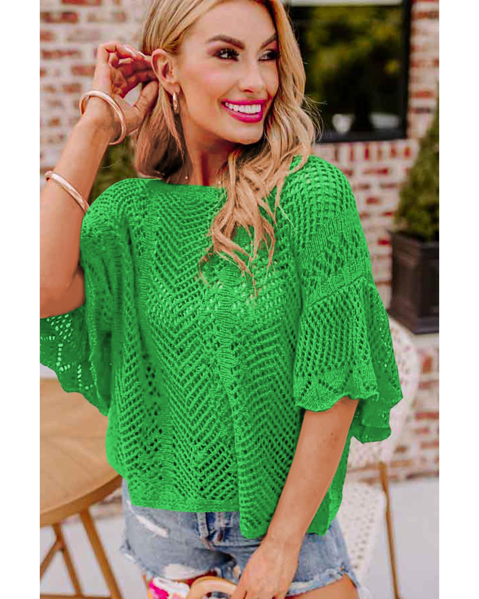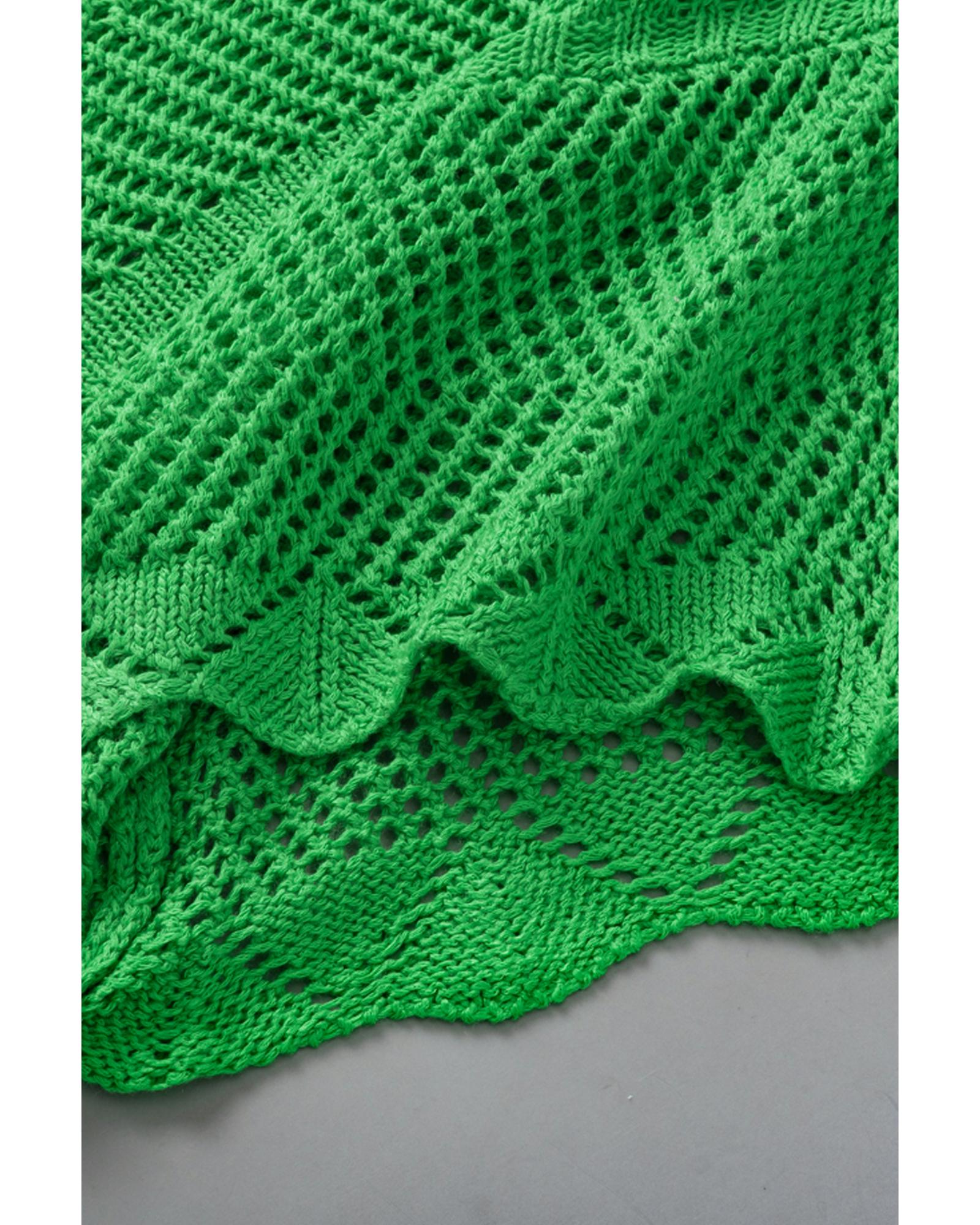 Green Pointelle Knit Scallop Edge Short Sleeve Top – XL
