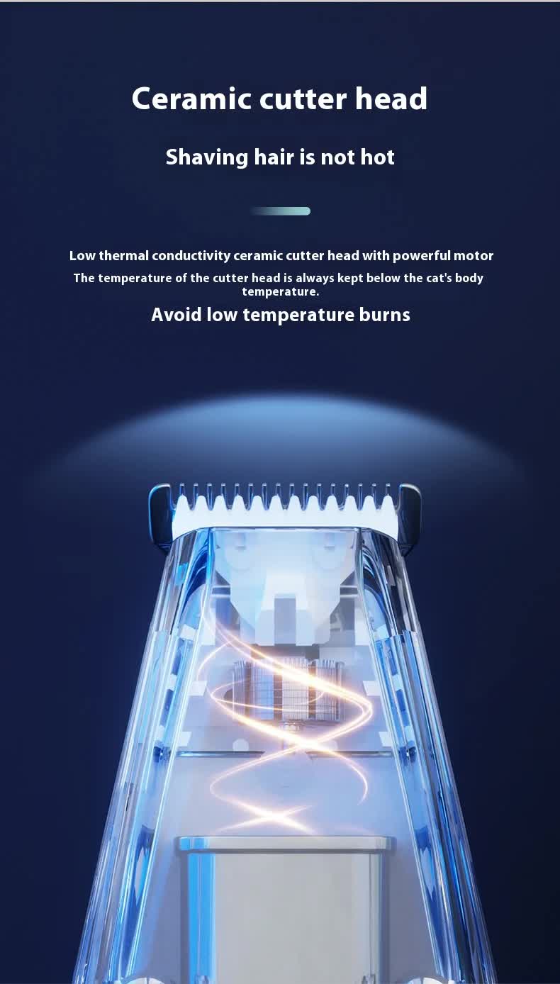 • Safe Ceramic Blade: Features low-heat ceramic blades with rounded R-corner tips to prevent accidental nicks, cuts, or burns, ensuring a comfortable and safe experience for your pet’s sensitive skin.