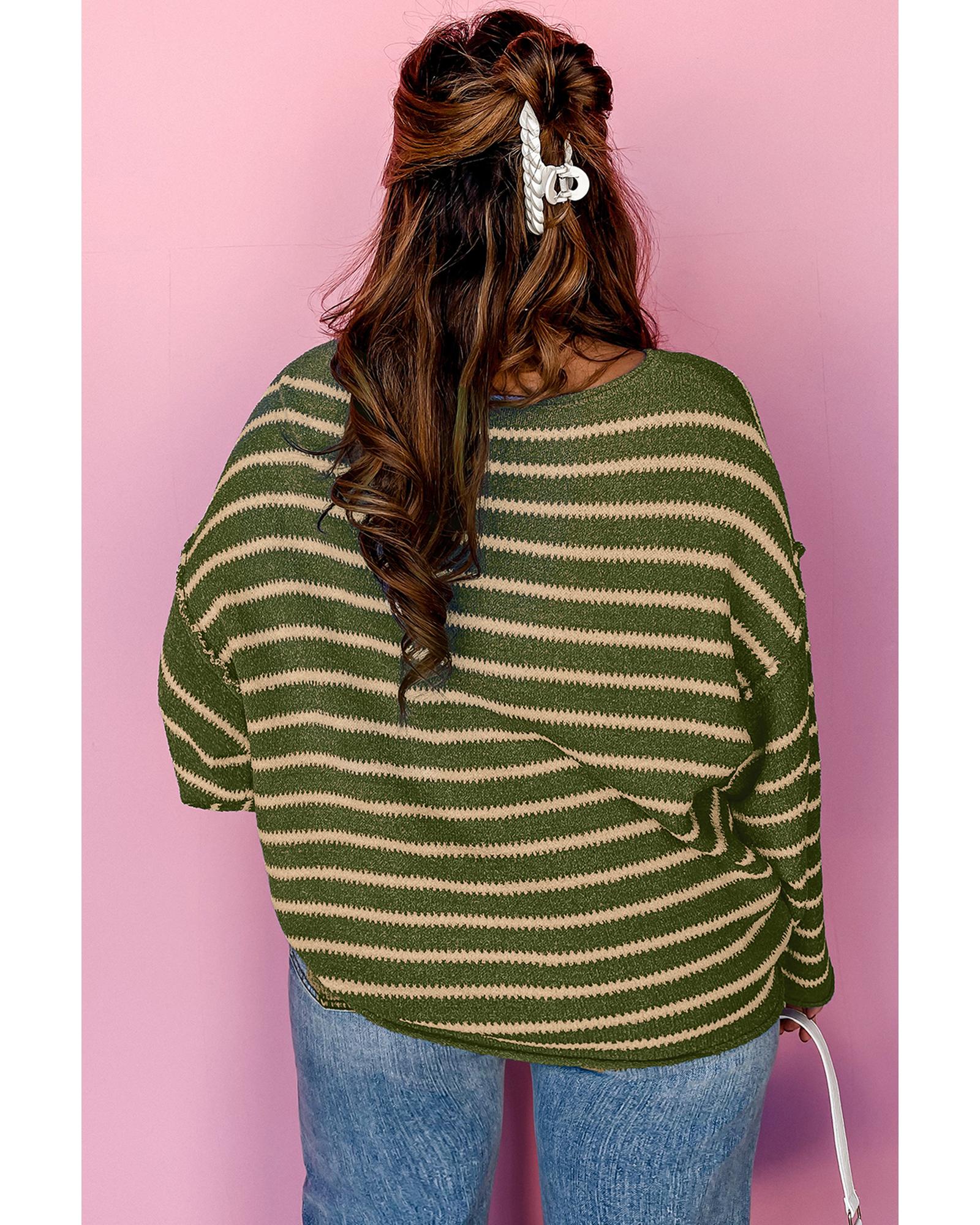 - Green stripe drop shoulder casual sweater
