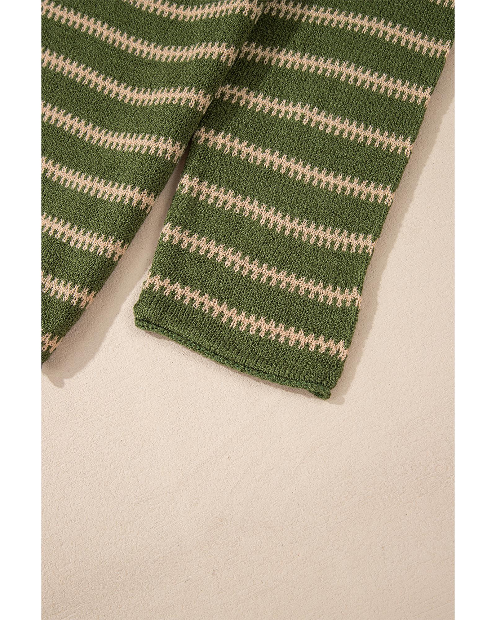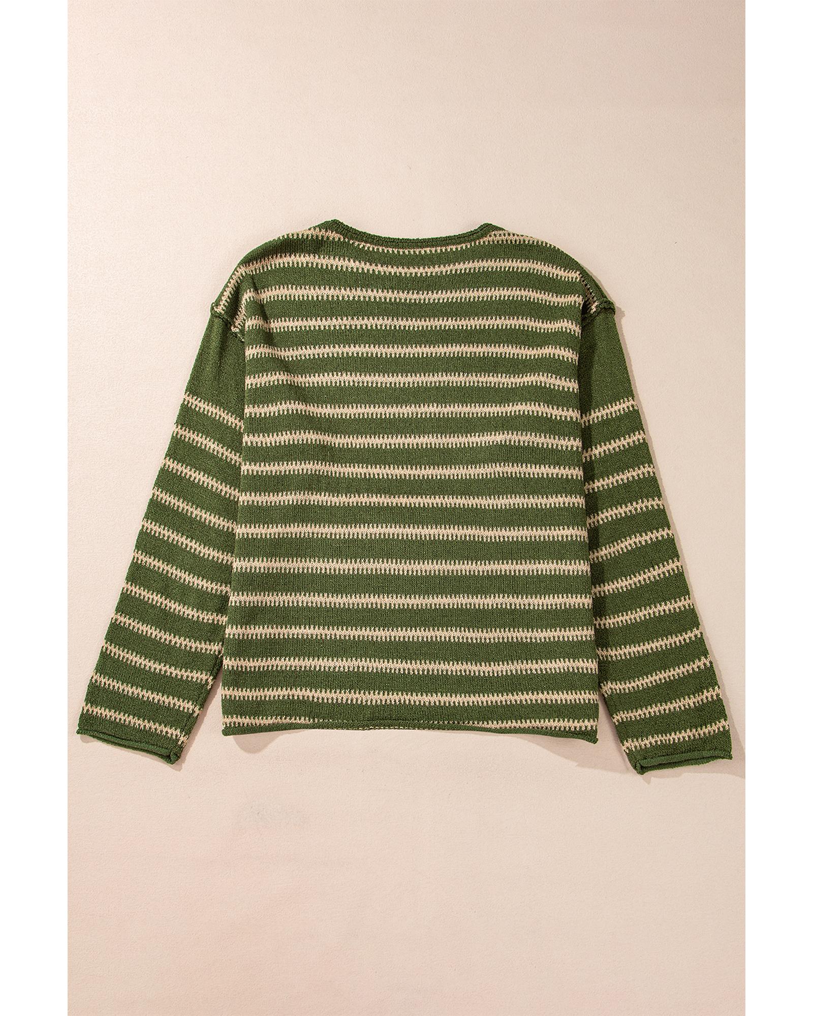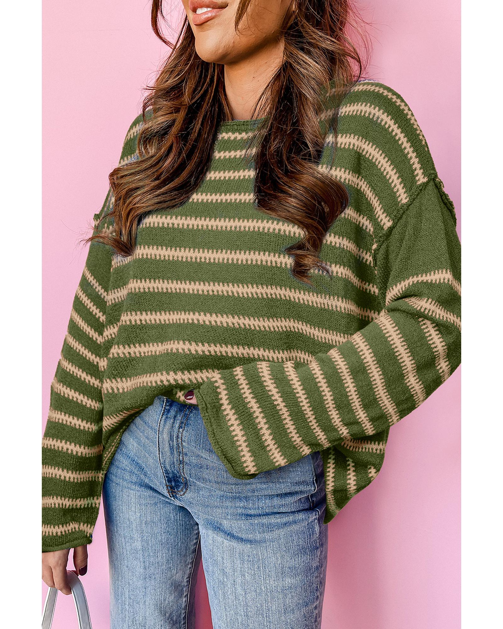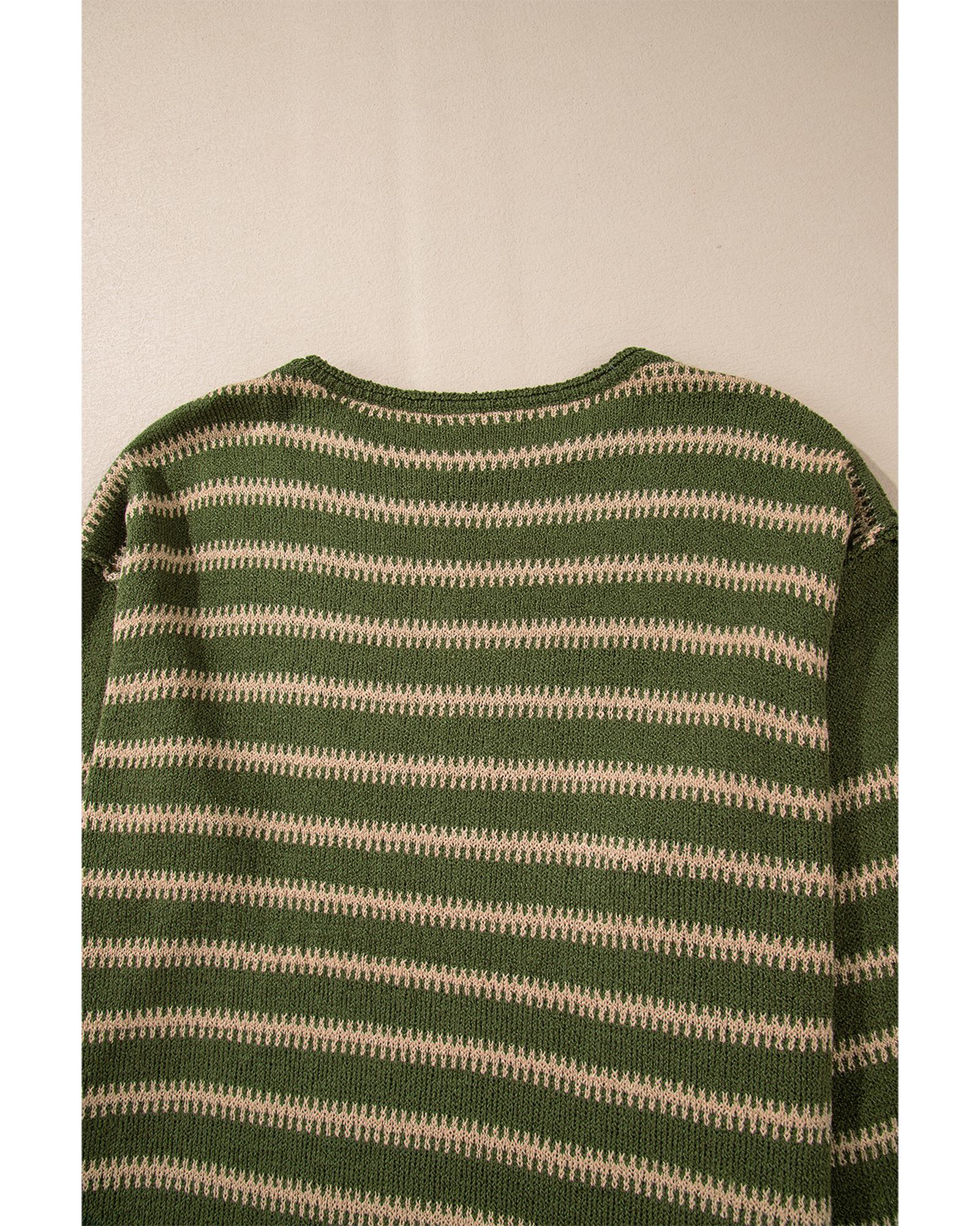 - Green stripe drop shoulder casual sweater