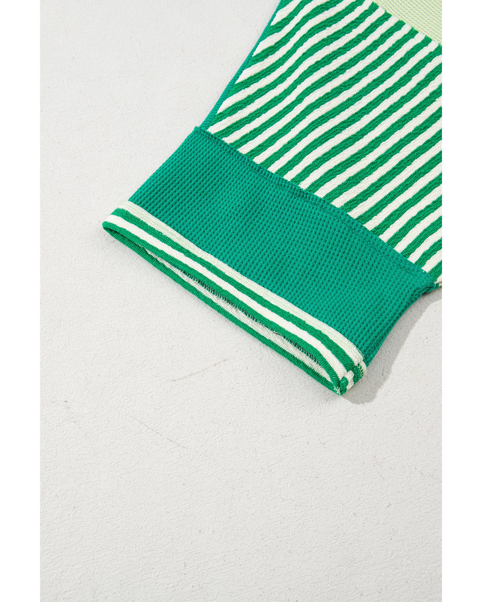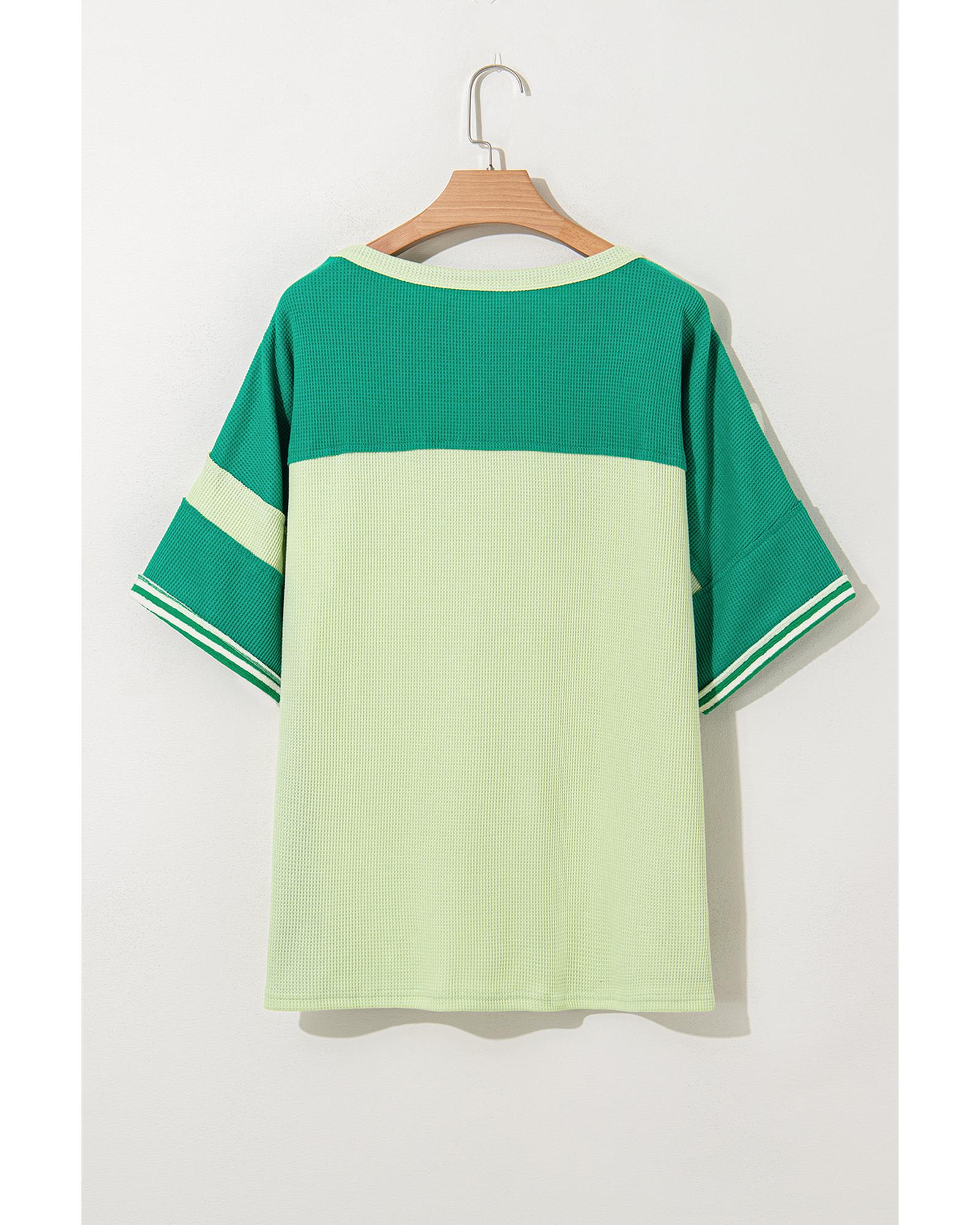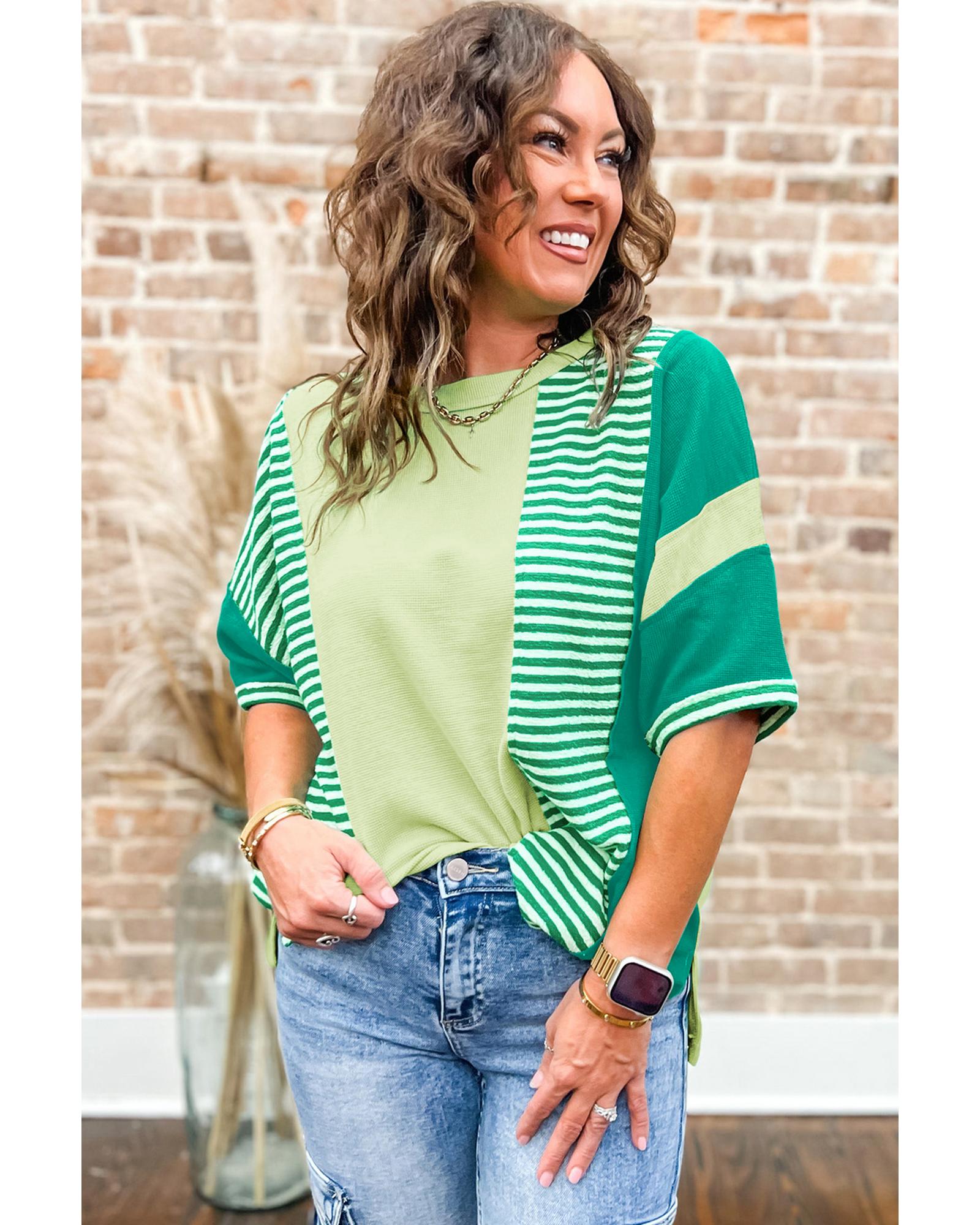 Green Stripe Patchwork Colorblock Plus Size T Shirt – 4X